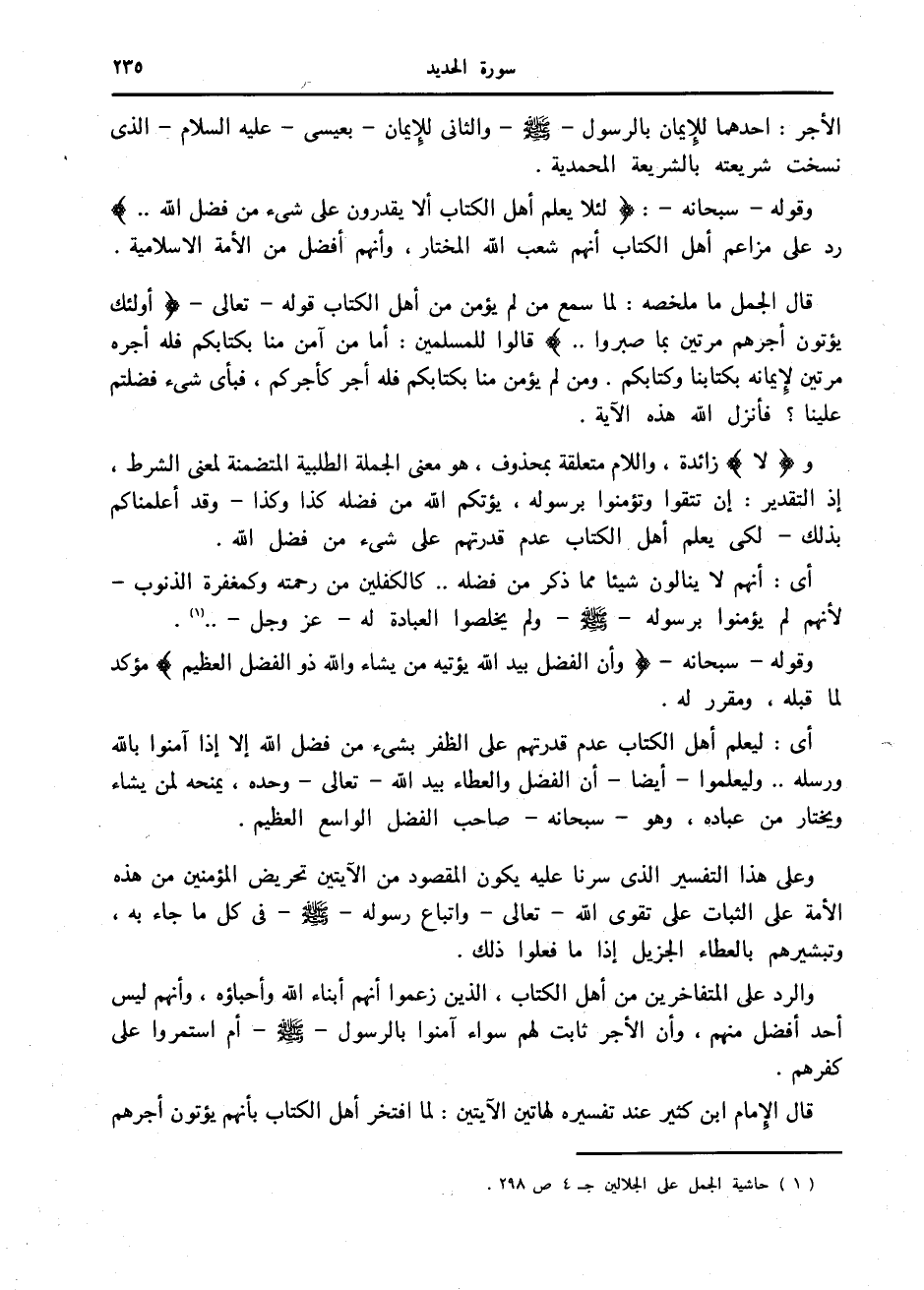 (1) حاشية الجمل على الجلالين ج 4 ص 298.
