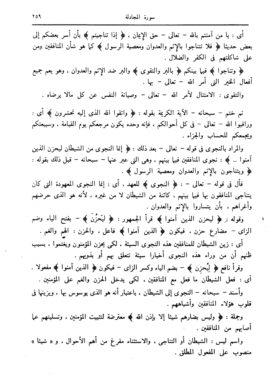 والمراد بالنجوى في قوله- تعالى- بعد ذلك: إِنَّمَا النَّجْوى مِنَ الشَّيْطانِ لِيَحْزُنَ الَّذِينَ آمَنُوا..: نجوى المنافقين فيما بينهم، وهي التي عبر عنها- سبحانه- قبل ذلك بقوله: