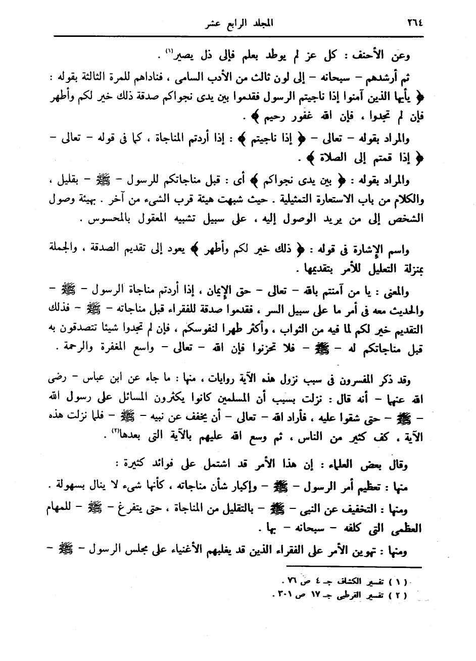 يا أَيُّهَا الَّذِينَ آمَنُوا إِذا ناجَيْتُمُ الرَّسُولَ فَقَدِّمُوا بَيْنَ يَدَيْ نَجْواكُمْ صَدَقَةً ذلِكَ خَيْرٌ لَكُمْ وَأَطْهَرُ فَإِنْ لَمْ تَجِدُوا، فَإِنَّ اللَّهَ غَفُورٌ رَحِيمٌ.