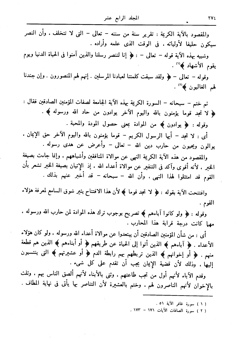 لا تَجِدُ قَوْماً يُؤْمِنُونَ بِاللَّهِ وَالْيَوْمِ الْآخِرِ يُوادُّونَ مَنْ حَادَّ اللَّهَ وَرَسُولَهُ.