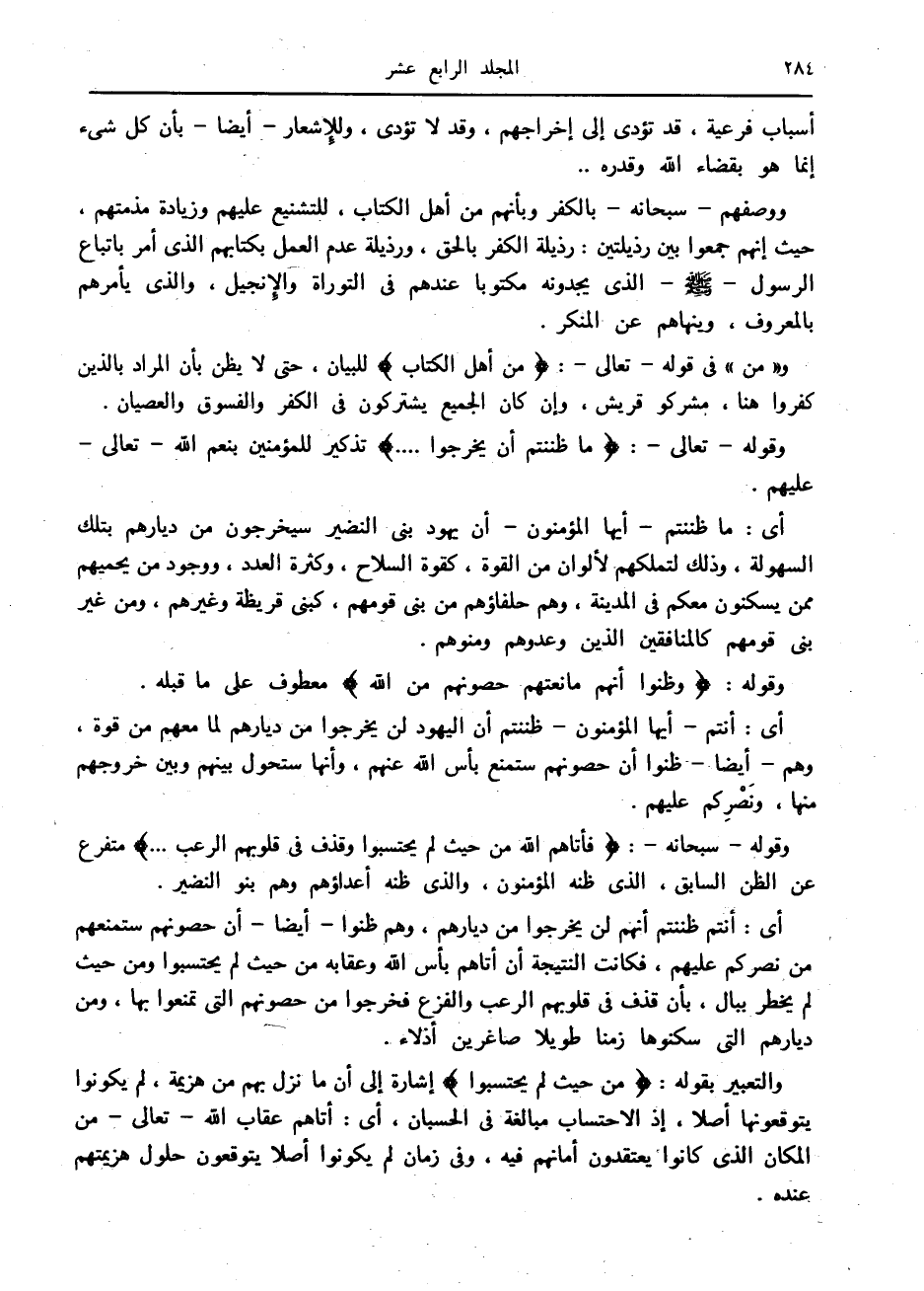 وقوله- سبحانه-: فَأَتاهُمُ اللَّهُ مِنْ حَيْثُ لَمْ يَحْتَسِبُوا وَقَذَفَ فِي قُلُوبِهِمُ الرُّعْبَ ... متفرع عن الظن السابق، الذي ظنه المؤمنون، والذي ظنه أعداؤهم وهم بنو النضير.