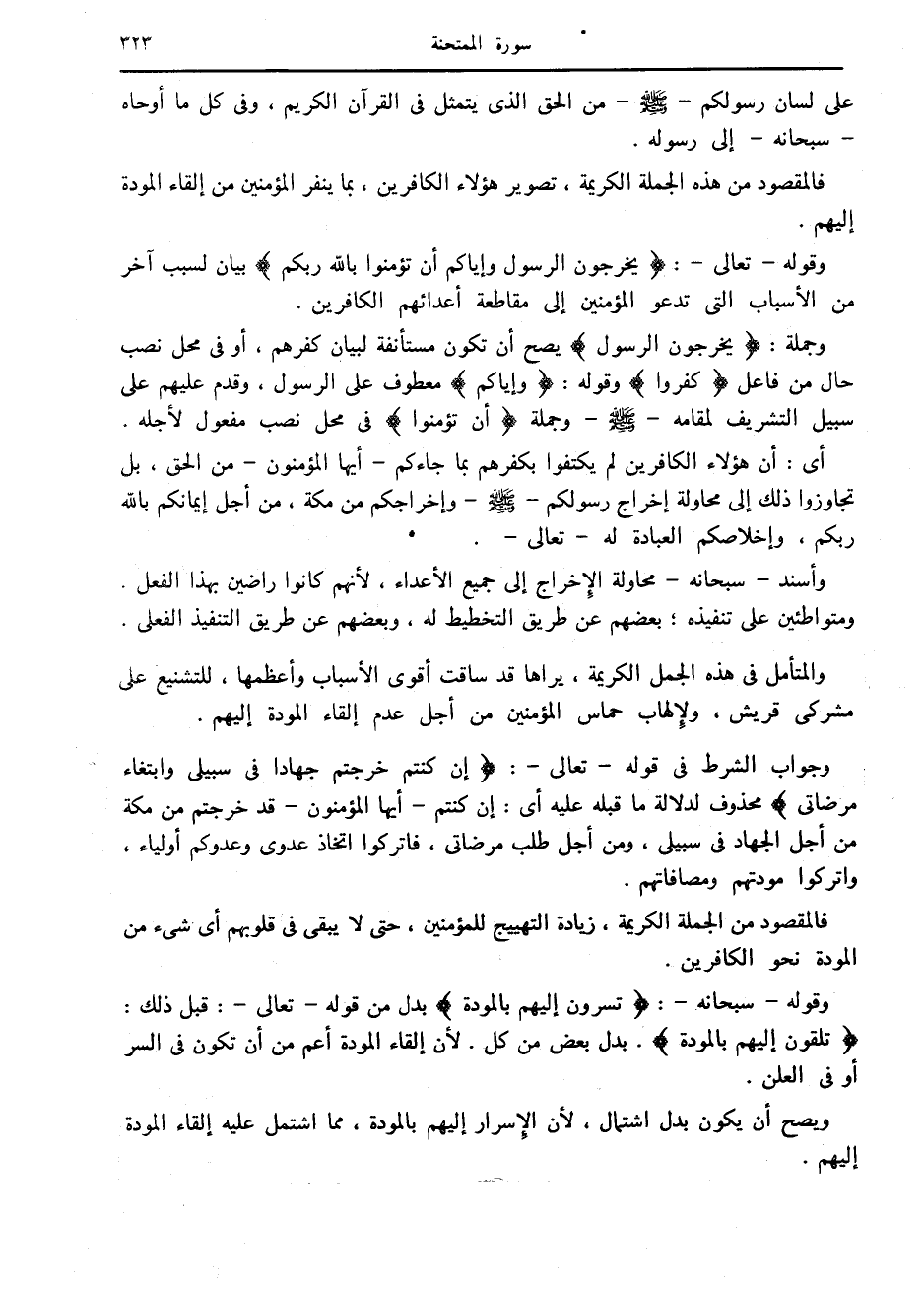 والمتأمل في هذه الجمل الكريمة، يراها قد ساقت أقوى الأسباب وأعظمها، للتشنيع على مشركي قريش، ولإلهاب حماس المؤمنين من أجل عدم إلقاء المودة إليهم.