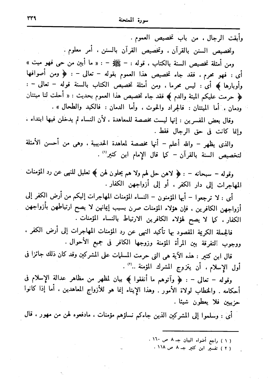 والذي يظهر- والله أعلم- أنها مخصصة لمعاهدة الحديبية، وهي من أحسن الأمثلة لتخصيص السنة بالقرآن- كما قال الإمام ابن كثير «1» .