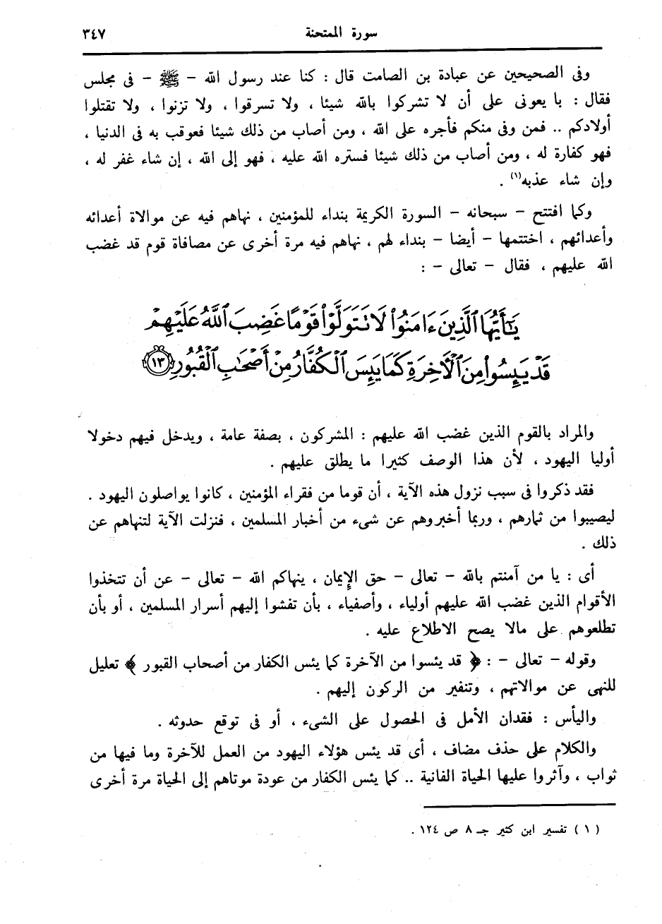 يا أَيُّهَا الَّذِينَ آمَنُوا لا تَتَوَلَّوْا قَوْماً غَضِبَ اللَّهُ عَلَيْهِمْ قَدْ يَئِسُوا مِنَ الْآخِرَةِ كَما يَئِسَ الْكُفَّارُ مِنْ أَصْحابِ الْقُبُورِ (13)