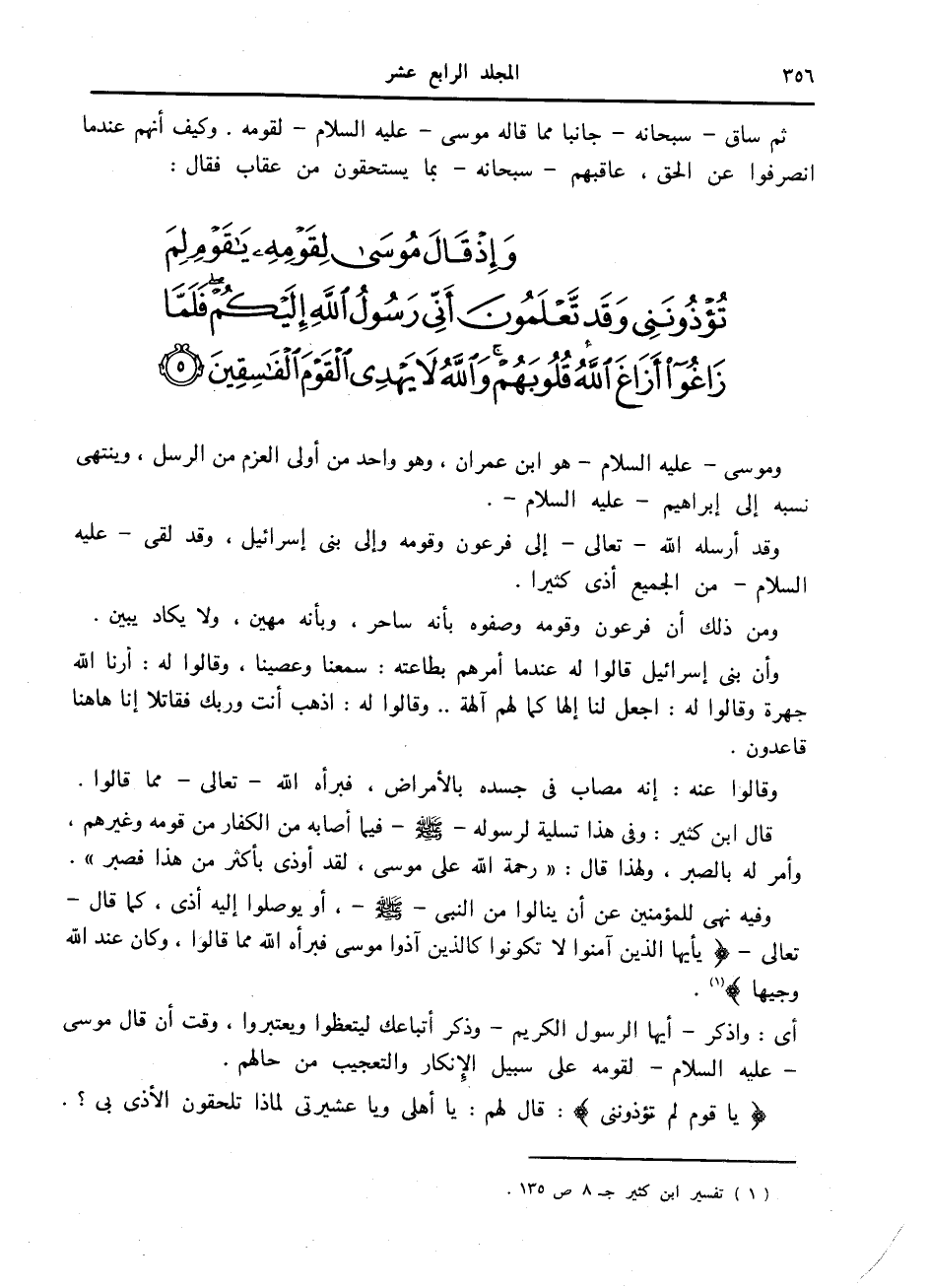 وَإِذْ قالَ مُوسى لِقَوْمِهِ يا قَوْمِ لِمَ تُؤْذُونَنِي وَقَدْ تَعْلَمُونَ أَنِّي رَسُولُ اللَّهِ إِلَيْكُمْ فَلَمَّا زاغُوا أَزاغَ اللَّهُ قُلُوبَهُمْ وَاللَّهُ لا يَهْدِي الْقَوْمَ الْفاسِقِينَ (5)