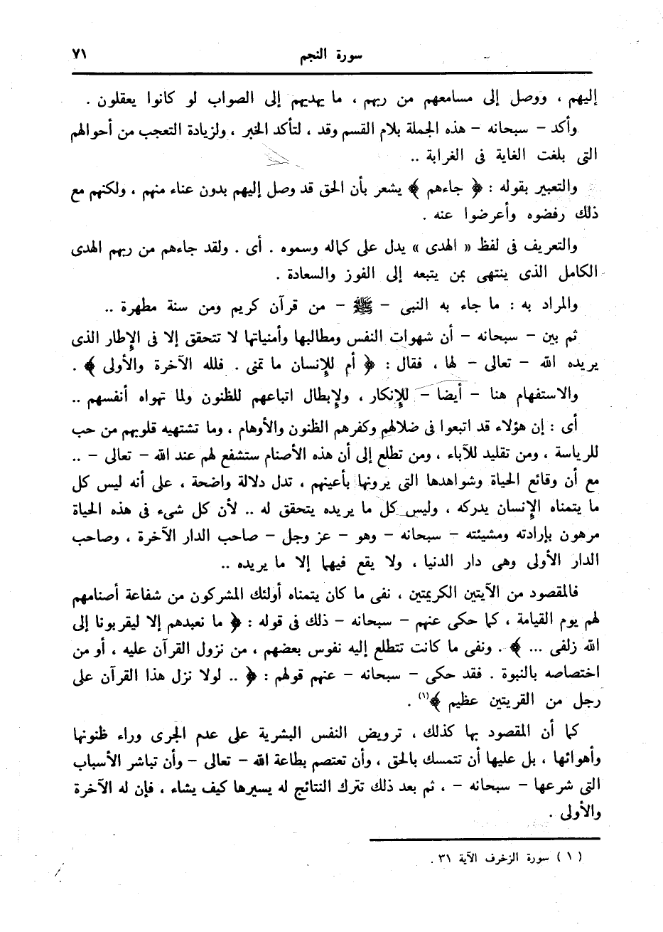 فالمقصود من الآيتين الكريمتين، نفى ما كان يتمناه أولئك المشركون من شفاعة أصنامهم لهم يوم القيامة، كما حكى عنهم- سبحانه- ذلك في قوله: ما نَعْبُدُهُمْ إِلَّا لِيُقَرِّبُونا إِلَى اللَّهِ زُلْفى.... ونفى ما كانت تتطلع إليه نفوس بعضهم، من نزول القرآن عليه، أو من اختصاصه بالنبوة. فقد حكى- سبحانه- عنهم قولهم:.. لَوْلا نُزِّلَ هذَا الْقُرْآنُ عَلى رَجُلٍ مِنَ الْقَرْيَتَيْنِ عَظِيمٍ «1» .