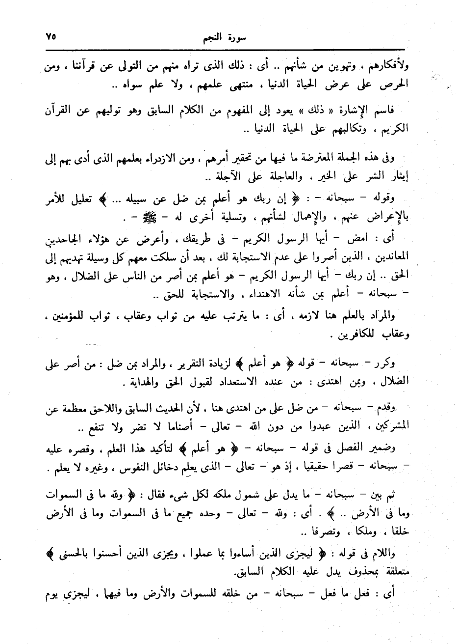 ولأفكارهم، وتهوين من شأنهم.. أى: ذلك الذي تراه منهم من التولي عن قرآننا، ومن الحرص على عرض الحياة الدنيا، منتهى علمهم، ولا علم سواه ...