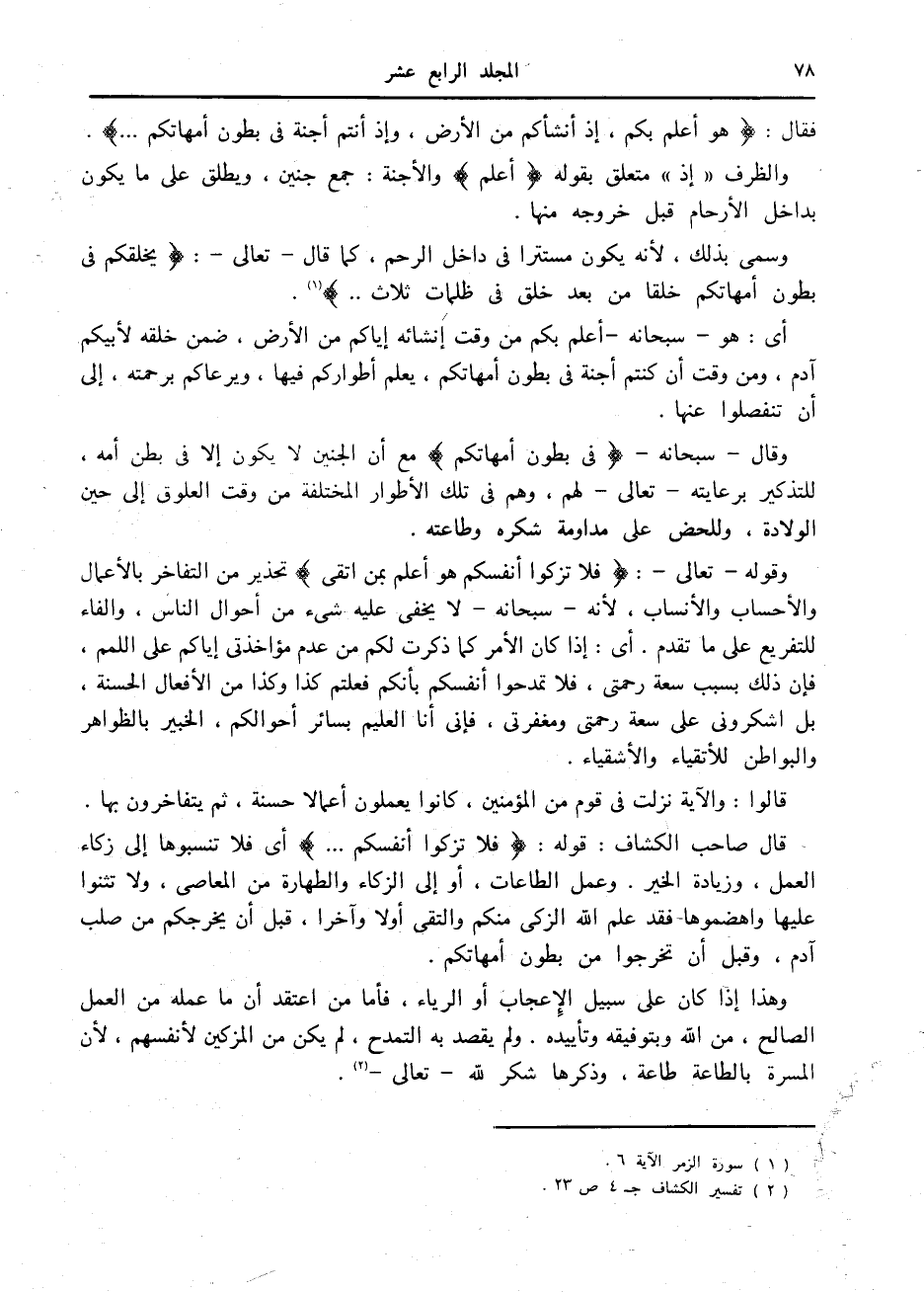 فقال: هُوَ أَعْلَمُ بِكُمْ، إِذْ أَنْشَأَكُمْ مِنَ الْأَرْضِ، وَإِذْ أَنْتُمْ أَجِنَّةٌ فِي بُطُونِ أُمَّهاتِكُمْ....