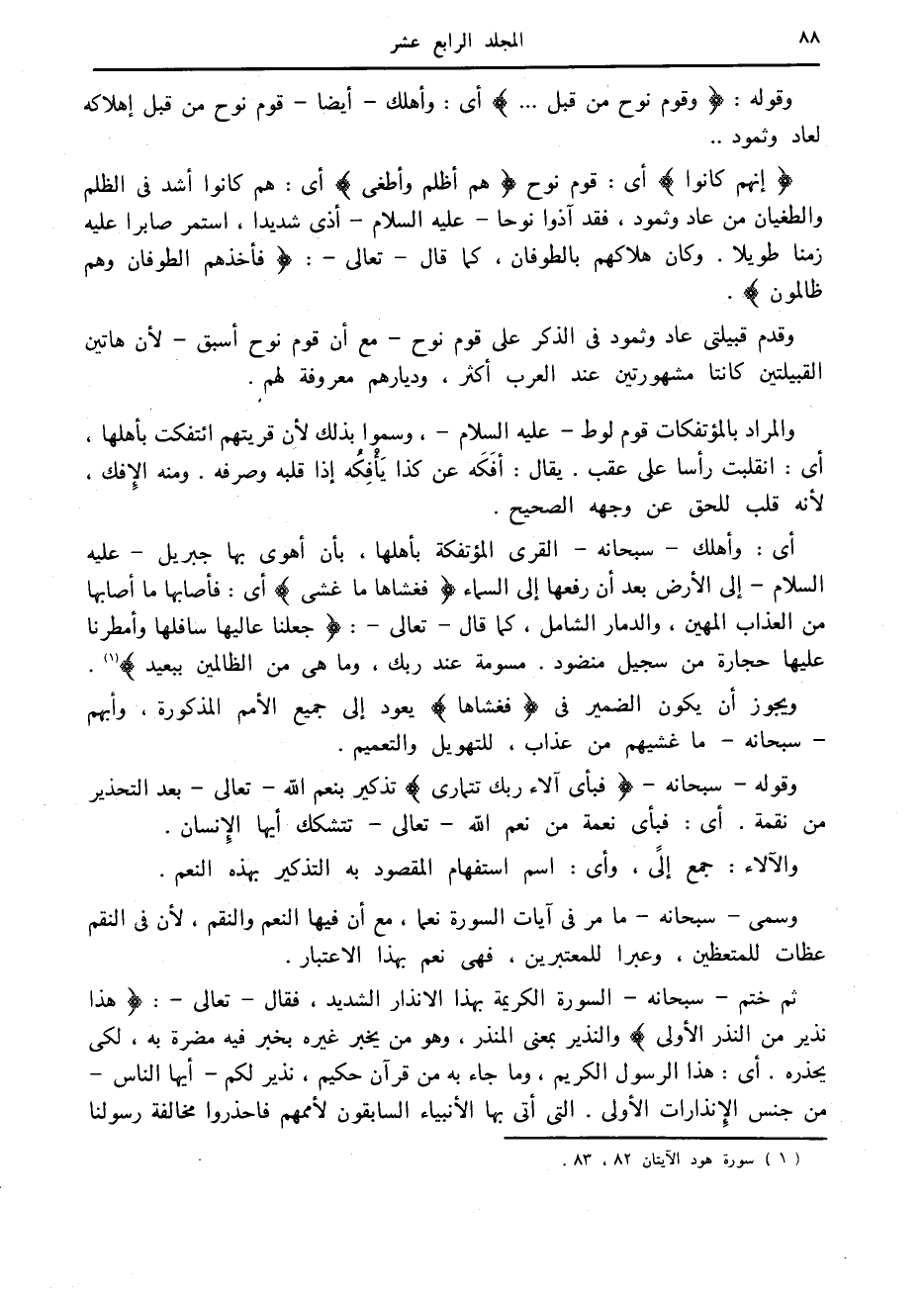 وقدم قبيلتي عاد وثمود في الذكر على قوم نوح- مع أن قوم نوح أسبق- لأن هاتين القبيلتين كانتا مشهورتين عند العرب أكثر، وديارهم معروفة لهم.