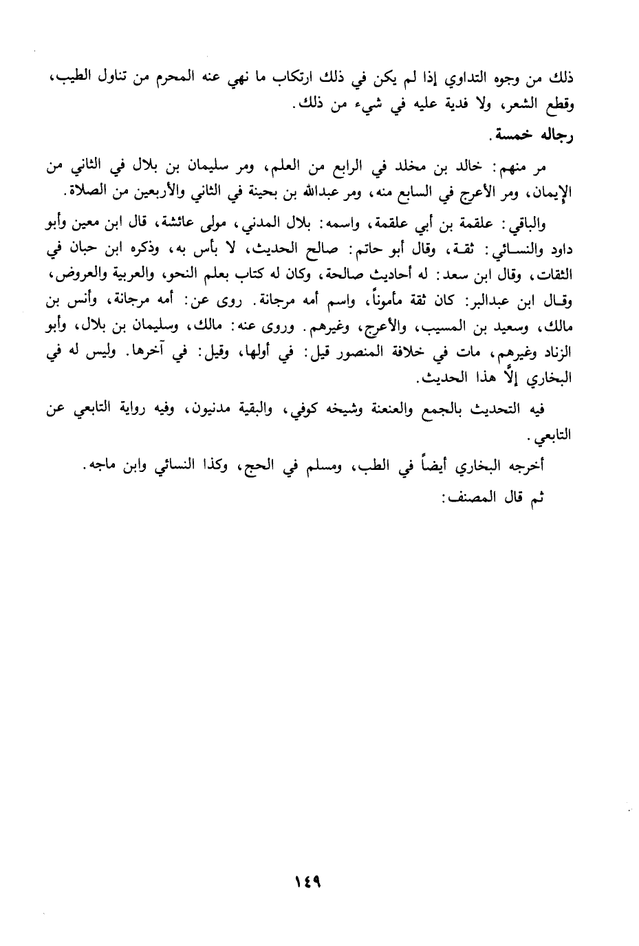 مرَّ منهم: خالد بن مخلد في الرابع من العلم، ومرَّ سليمان بن بلال في الثاني من الإيمان، ومرَّ الأعرج في السابع منه، ومرَّ عبد الله بن بحينة في الثاني والأربعين من الصلاة.
