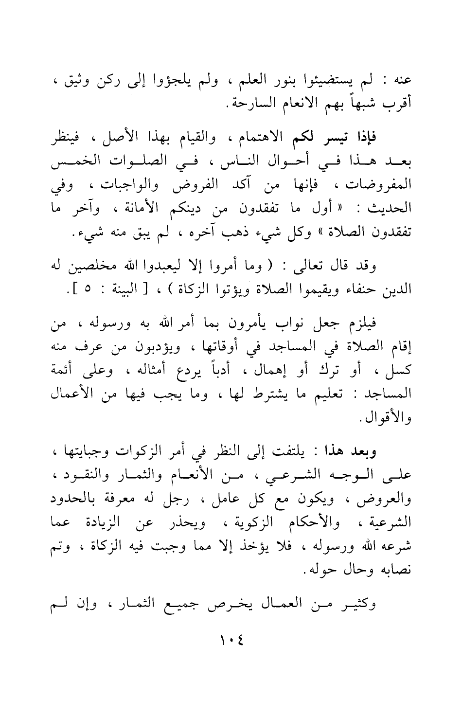 وقد قال تعالى {وَمَا أُمِرُوا إِلاّ لِيَعْبُدُوا اللَّهَ مُخْلِصِينَ لَهُ الدِّينَ حُنَفَاءَ وَيُقِيمُوا الصَّلاةَ وَيُؤْتُوا الزَّكَاةَ} [سورة البينة آية: 5] .