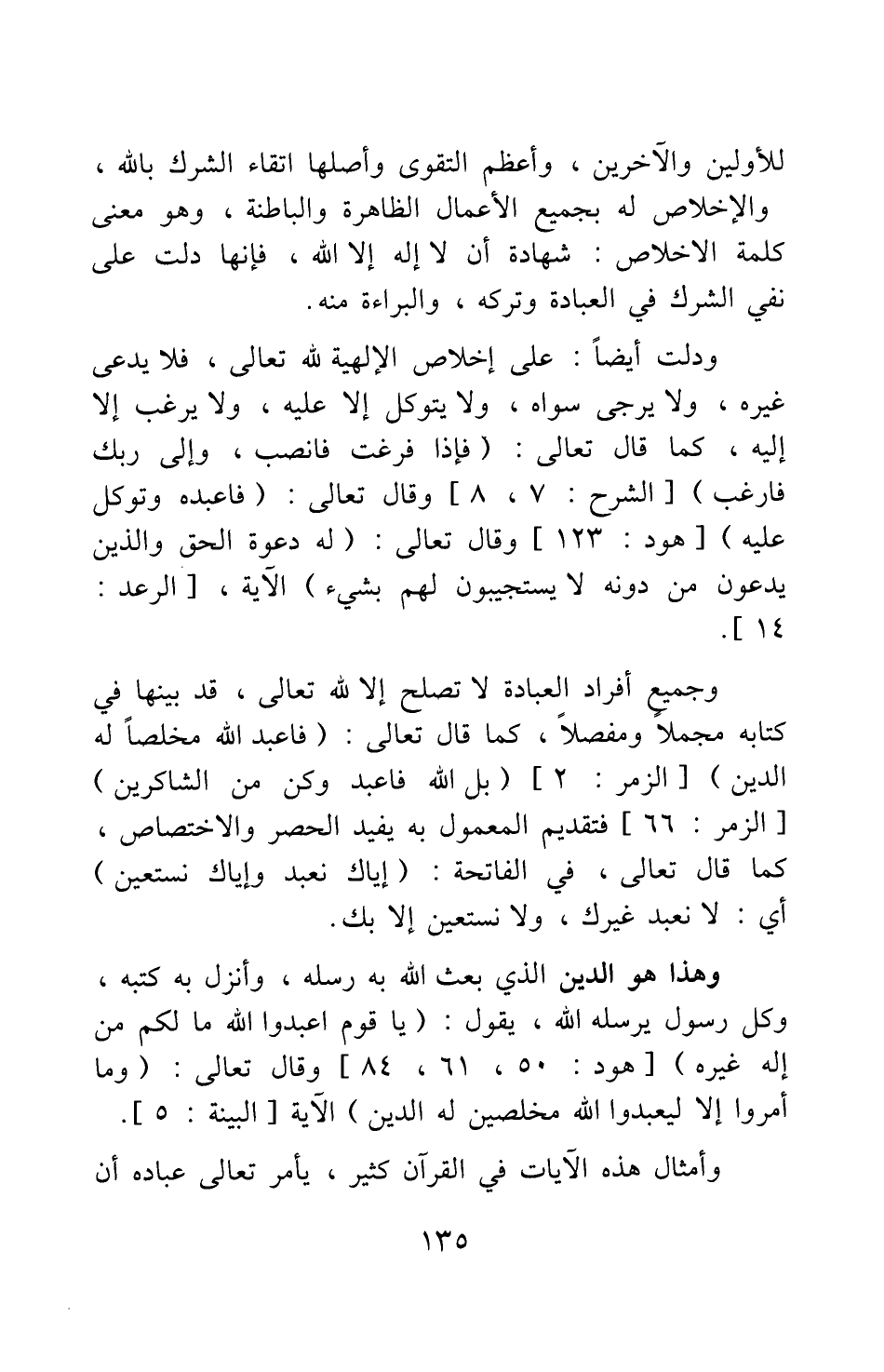 وقال تعالى {وَمَا أُمِرُوا إِلاّ لِيَعْبُدُوا اللَّهَ مُخْلِصِينَ لَهُ الدِّينَ} [سورة البينة آية: 5] الآية.
