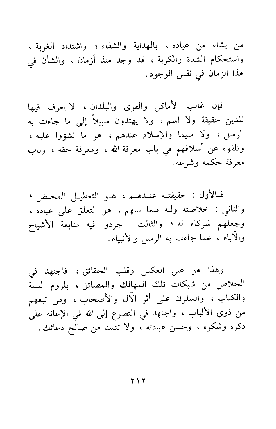 وهذا هو عين العكس وقلب الحقائق، فاجتهد في الخلاص من شبكات تلك المهالك والمضائق، بلزوم السنة والكتاب، والسلوك على أثر الآل والأصحاب، ومن تبعهم من ذوي الألباب، واجتهد في التضرع إلى الله في الإعانة على ذكره وشكره وحسن عبادته، ولا تنسنا من صالح دعائك.