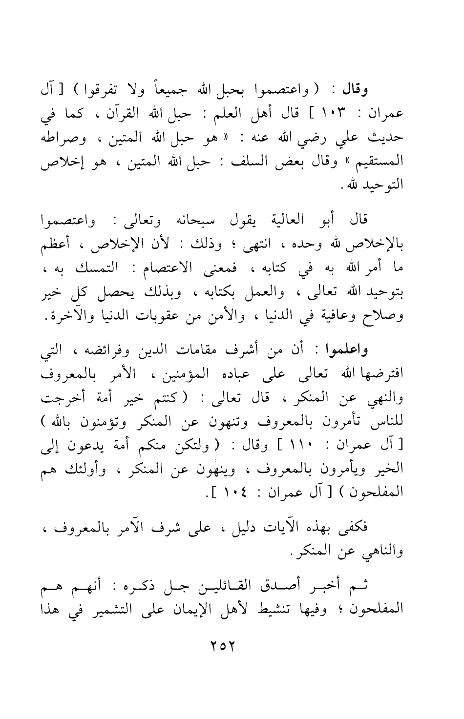 وقال: {وَلْتَكُنْ مِنْكُمْ أُمَّةٌ يَدْعُونَ إِلَى الْخَيْرِ وَيَأْمُرُونَ بِالْمَعْرُوفِ وَيَنْهَوْنَ عَنِ الْمُنْكَرِ وَأُولَئِكَ هُمُ الْمُفْلِحُونَ} [سورة آل عمران آية: 104] .