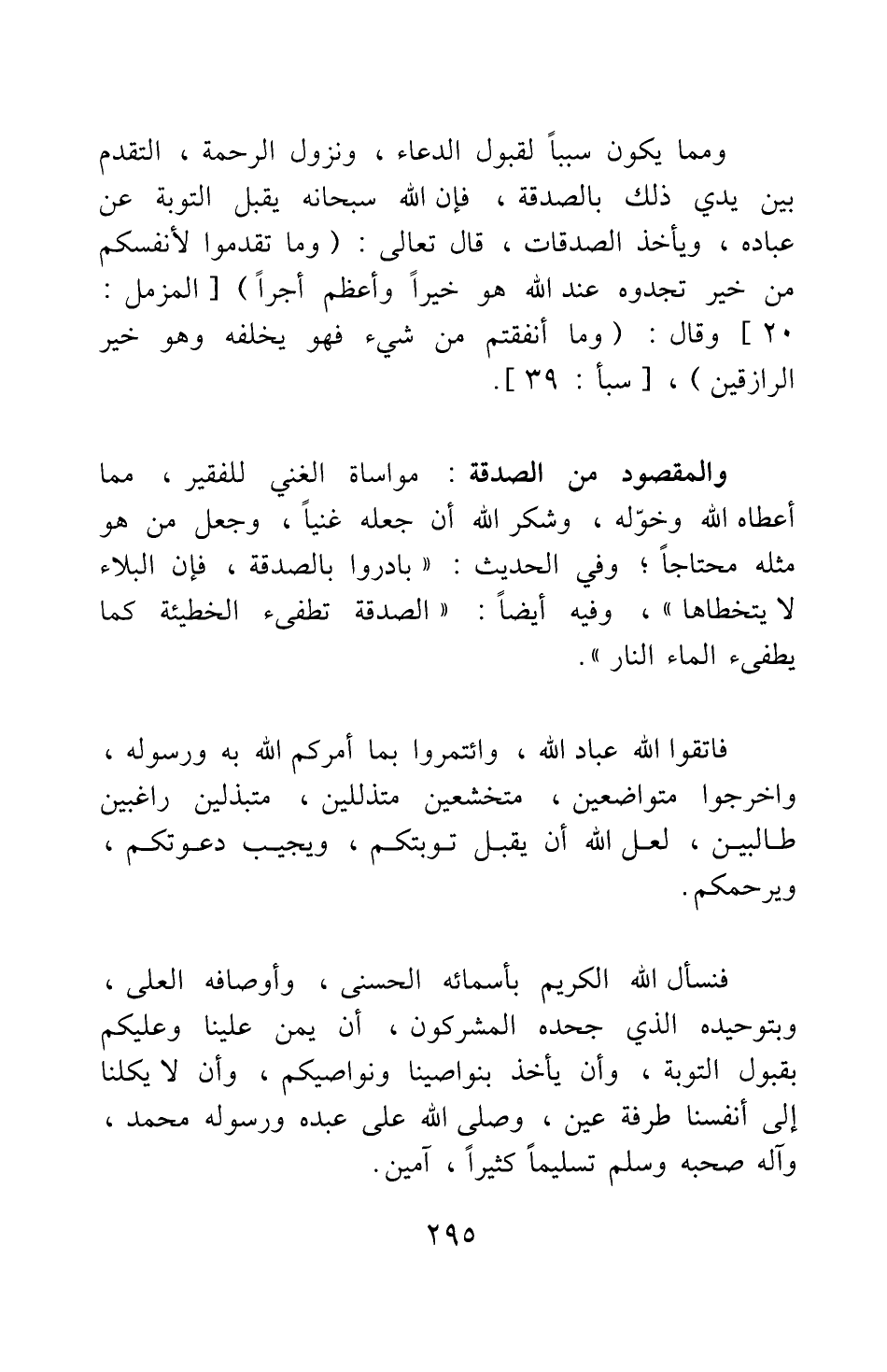 فاتقوا الله عباد الله، وائتمروا بما أمركم الله به ورسوله، وأخرجوا متواضعين، متخشعين متذللين متبذلين، راغبين طالبين، لعل الله أن يقبل توبتكم، ويجيب دعوتكم، ويرحمكم.