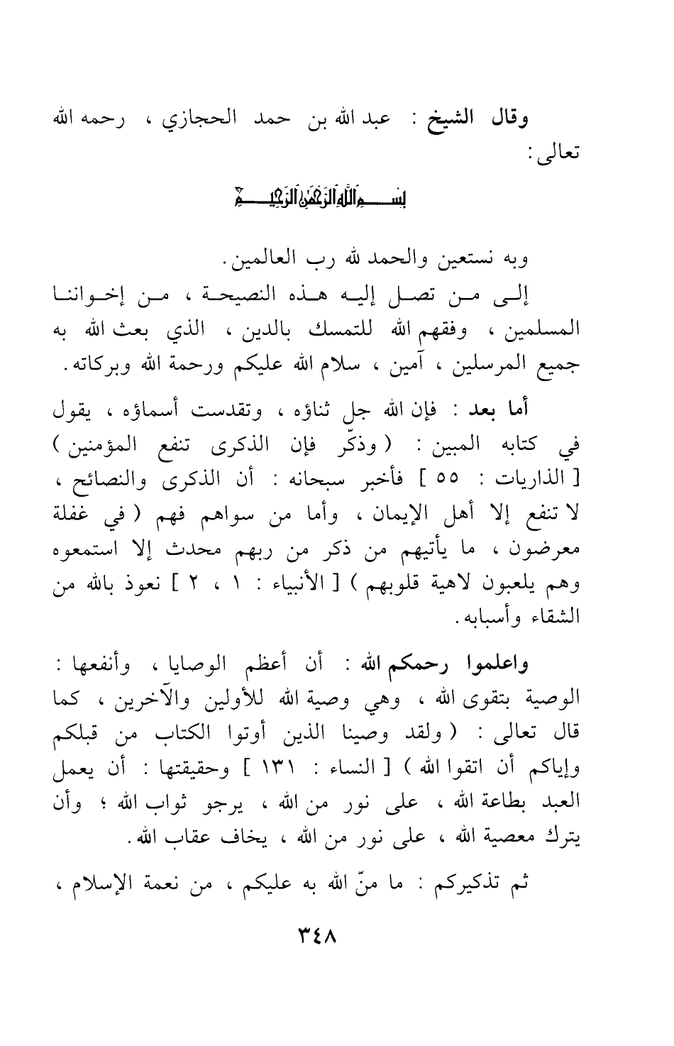 وقال الشيخ: عبد الله بن حمد الحجازي، رحمه الله تعالى: