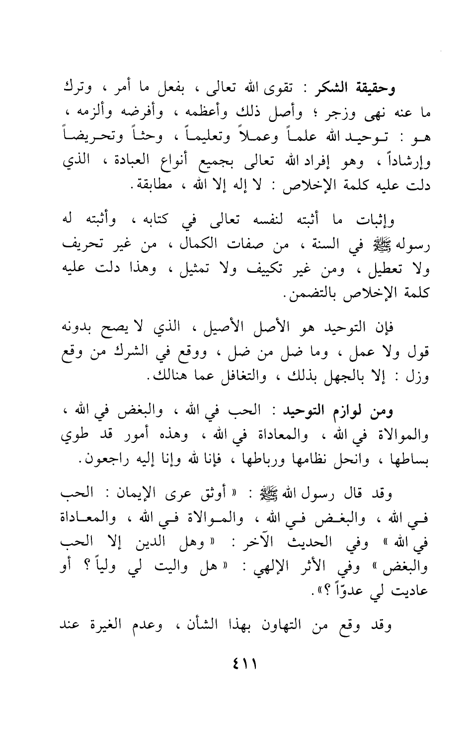 ومن لوازم التوحيد: الحب في الله، والبغض في الله، والموالاة في الله، والمعاداة في الله؛ وهذه أمور قد طوي بساطها، وانحل نظامها ورباطها؛ فإنا لله وإنا إليه راجعون.
