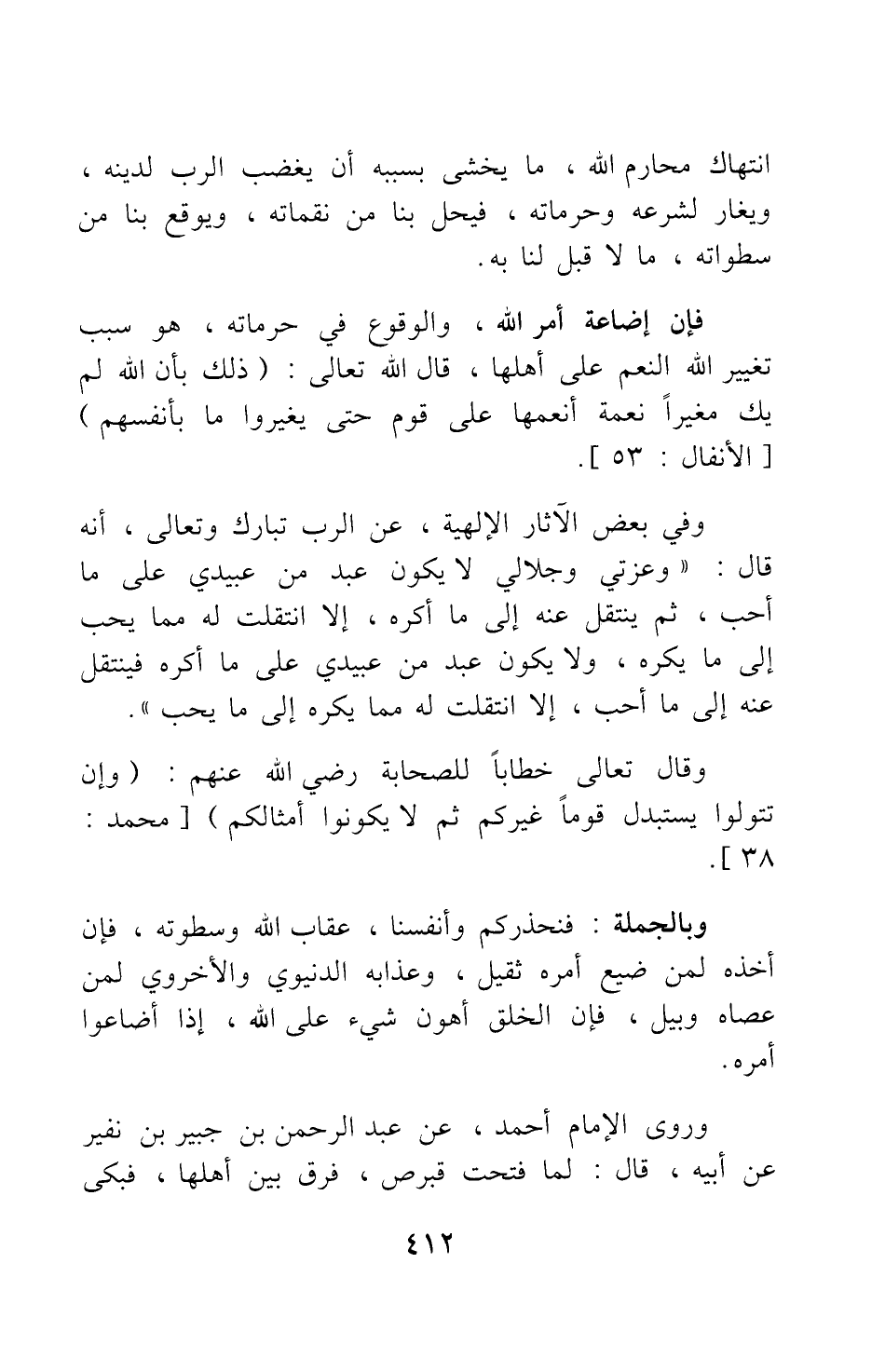 وبالجملة: فنحذركم وأنفسنا، عقاب الله وسطوته؛ فإن أخذه لمن ضيع أمره ثقيل، وعذابه الدنيوي والأخروي لمن عصاه وبيل؛ فإن الخلق أهون شيء على الله، إذا أضاعوا أمره.