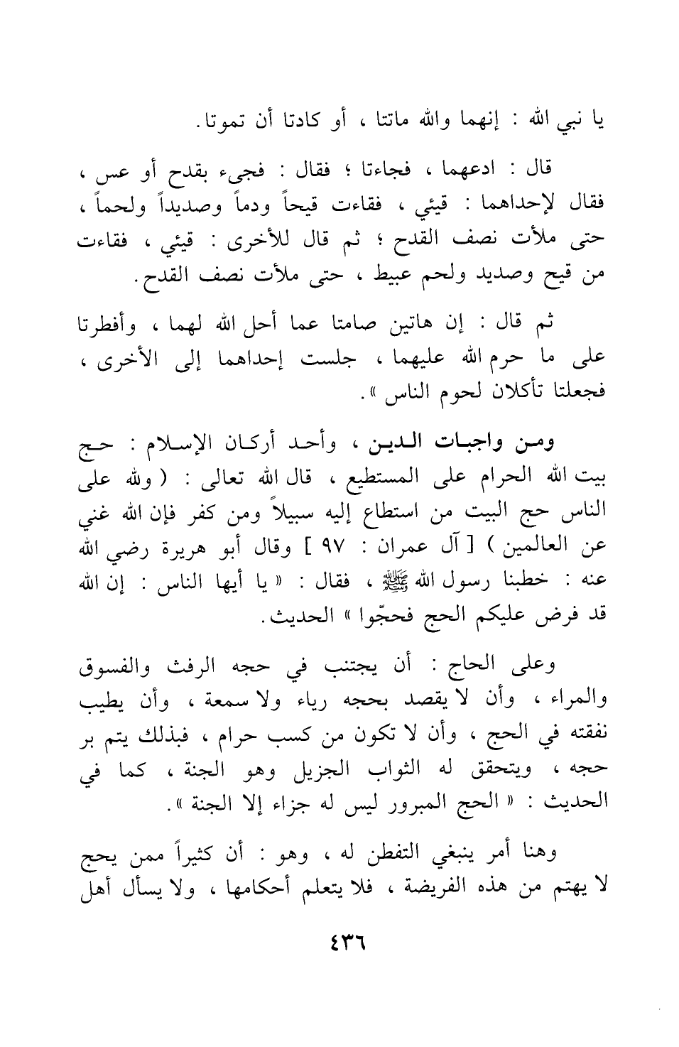 ومن واجبات الدين، وأحد أركان الإسلام: حج بيت الله الحرام على المستطيع، قال الله تعالى: وَلِلَّهِ عَلَى النَّاسِ حِجُّ الْبَيْتِ مَنِ اسْتَطَاعَ إِلَيْهِ سَبِيلاً وَمَنْ كَفَرَ فَإِنَّ اللَّهَ غَنِيٌّ عَنِ الْعَالَمِينَ} [سورة آل عمران آية: 97] .