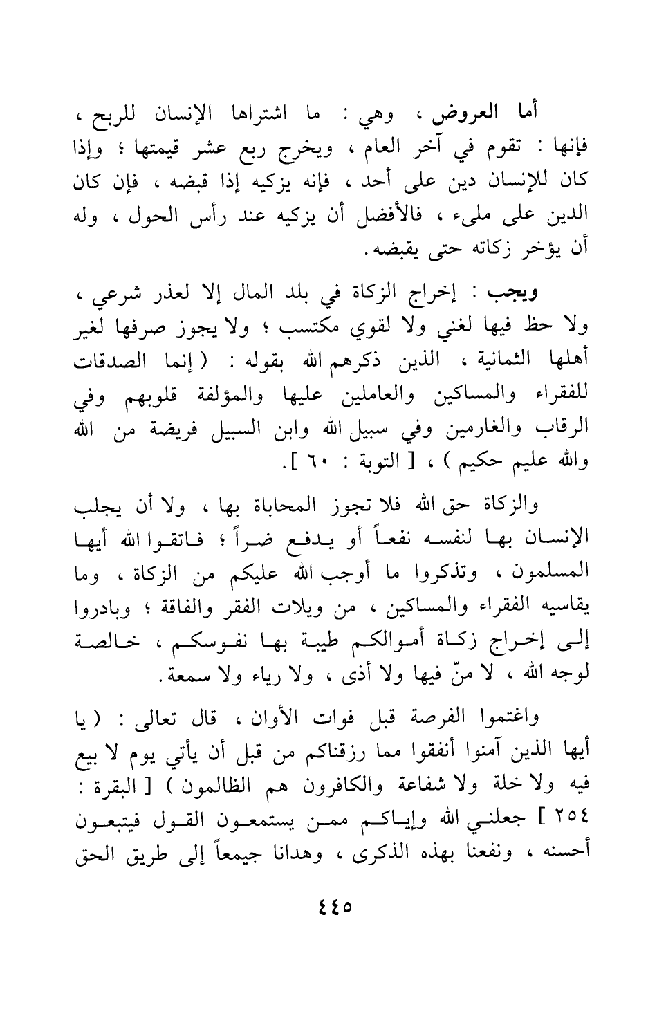 والزكاة حق الله فلا تجوز المحاباة بها، ولا أن يجلب الإنسان بها لنفسة نفعا أو يدفع ضرا; فاتقوا الله أيها المسلمون، وتذكروا ما أوجب الله عليكم من الزكاة، وما يقاسيه الفقراء والمساكين، من ويلات الفقر والفاقة، وبادروا إلى إخراج زكاة أموالكم طيبة بها نفوسكم، خالصة لوجه الله، لا منّ فيها ولا أذى، ولا رياء ولا سمعة.