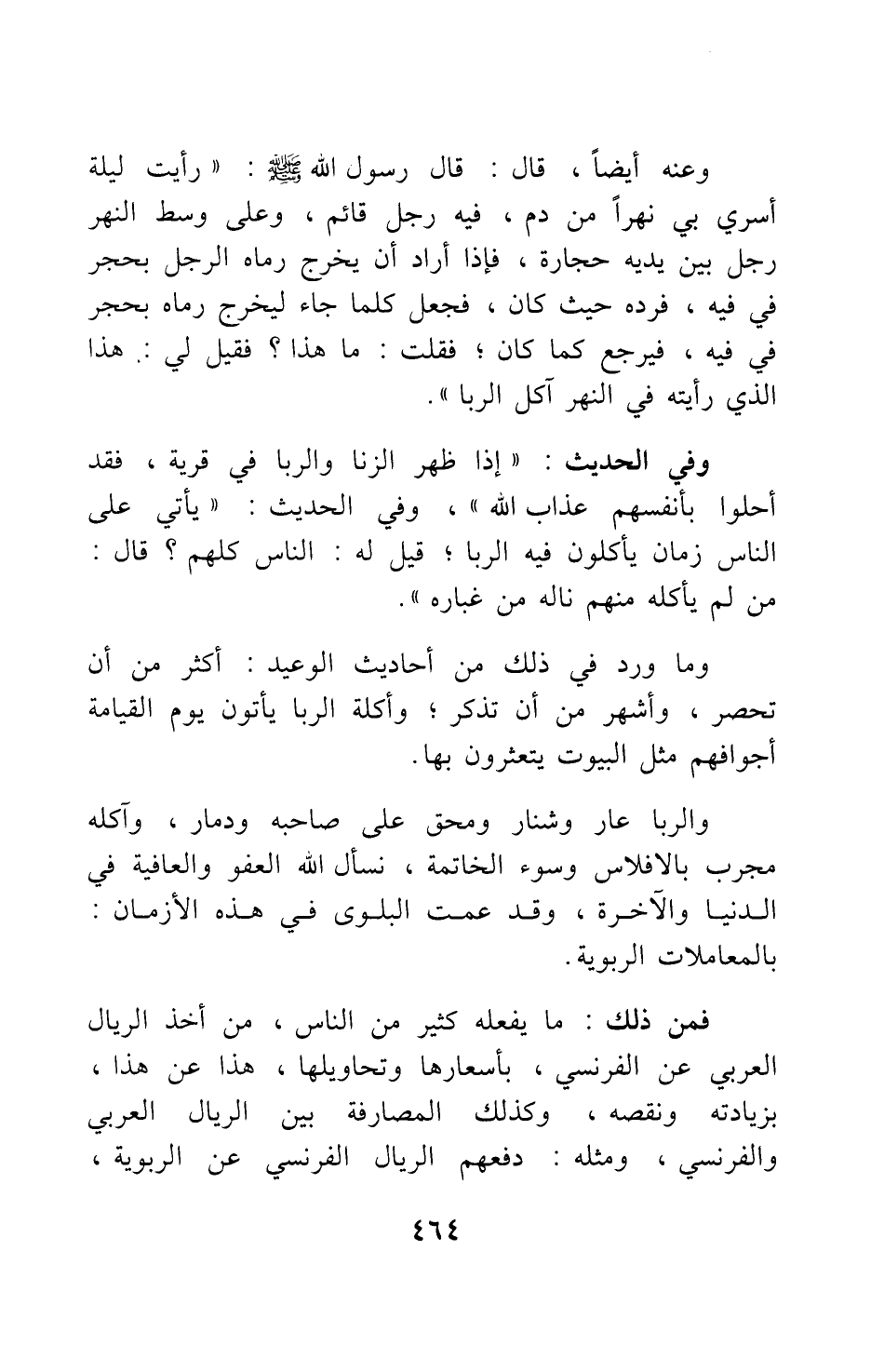 فمن ذلك: ما يفعله كثير من الناس من أخذ الريال العربي عن الفرنسي، بأسعارها وتحاويلها، هذا عن هذا، بزيادته ونقصه، وكذلك المصارفة بين الريال العربي والفرنسي، ومثله: دفعهم الريال الفرنسي عن الروبية،