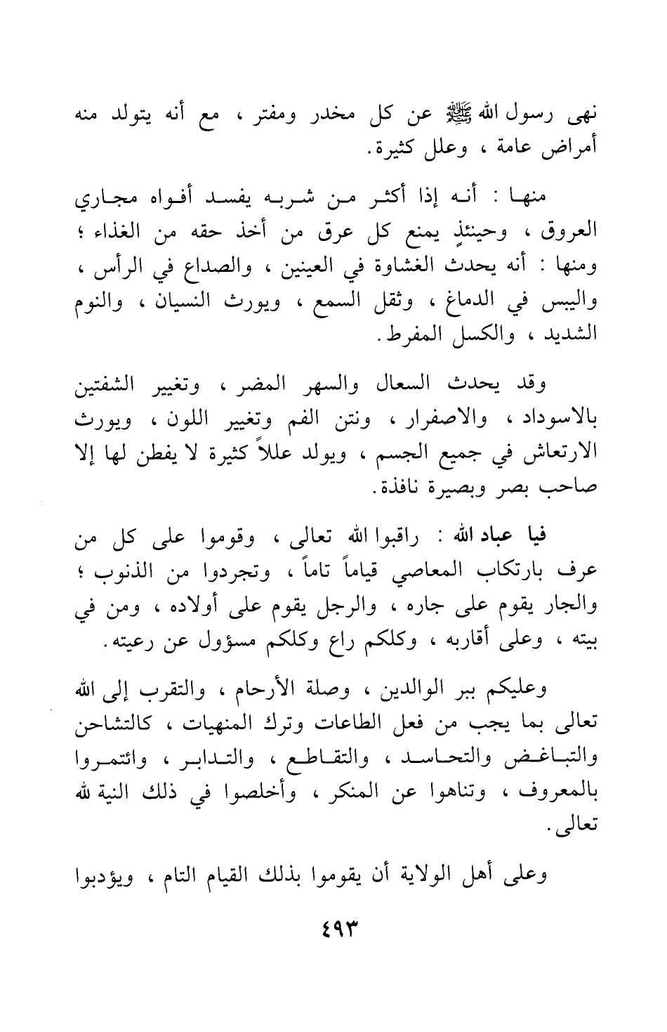 وعليكم ببر الوالدين، وصلة الأرحام، والتقرب إلى الله تعالى بما يجب من فعل الطاعات وترك المنهيات، كالتشاحن والتباغض والتحاسد، والتقاطع، والتدابر؛ وائتمروا بالمعروف، وتناهوا عن المنكر، وأخلصوا في ذلك النية لله تعالى.