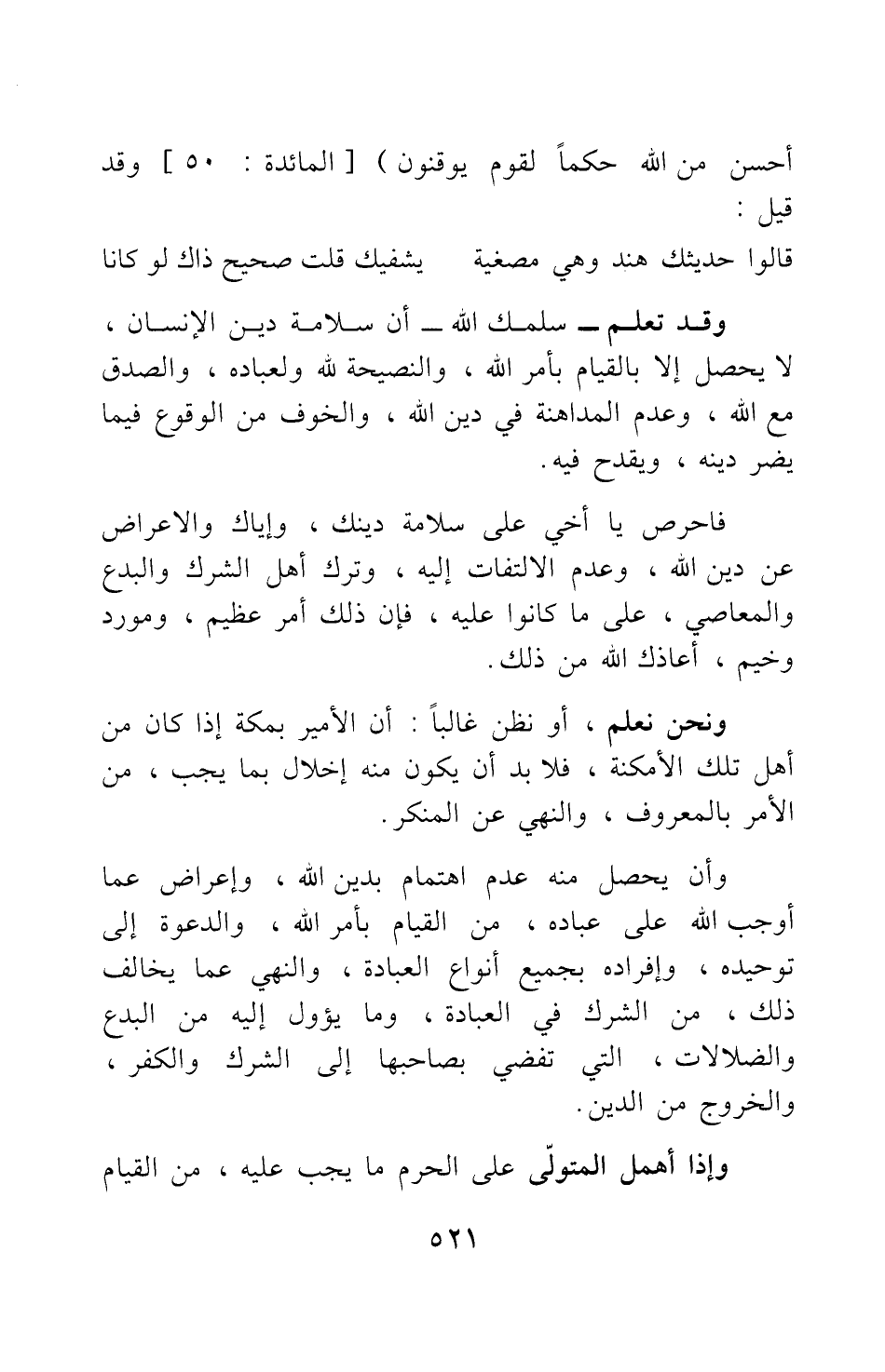 فاحرص يا أخي على سلامة دينك، وإياك والإعراض عن دين الله، وعدم الالتفات إليه، وترك أهل الشرك والبدع والمعاصي، على ما كانوا عليه؛ فإن ذلك أمر عظيم، ومورد وخيم، أعاذك الله من ذلك.