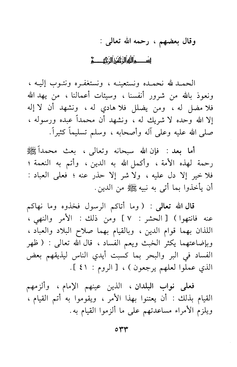 وقال بعضهم، رحمه الله تعالى: