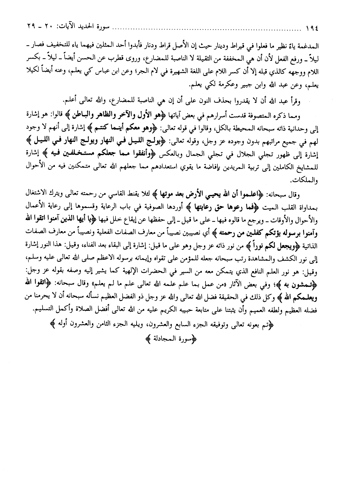 تم بعونه تعالى وتوفيقه الجزء السابع والعشرون، ويليه الجزء الثامن والعشرون أوله سورة المجادلة