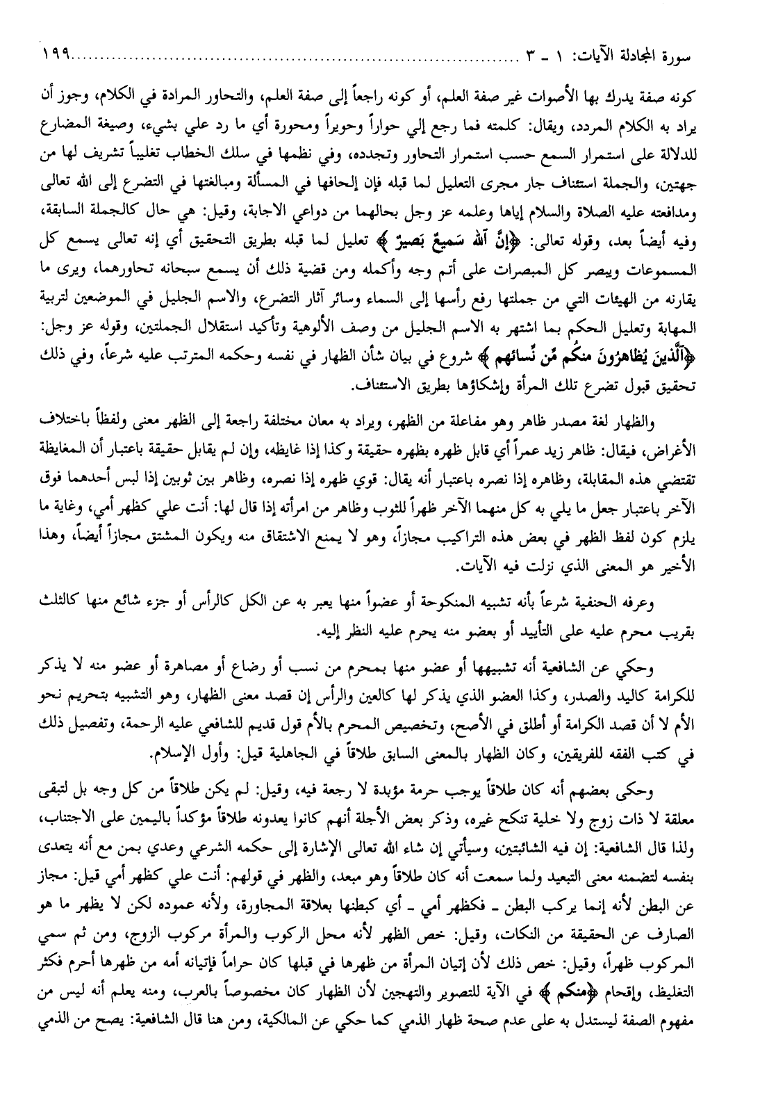 الَّذِينَ يُظاهِرُونَ مِنْكُمْ مِنْ نِسائِهِمْ شروع في بيان شأن الظهار في نفسه وحكمه المترتب عليه شرعا، وفي ذلك تحقيق قبول تضرع تلك المرأة وإشكاؤها بطريق الاستئناف.