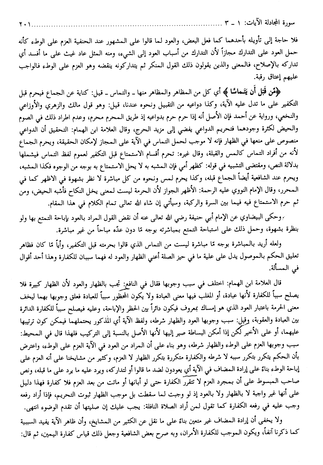 وحكى البيضاوي عن الإمام أبي حنيفة رضي الله تعالى عنه أن نقض القول المراد بالعود بإباحة التمتع بها ولو بنظرة بشهوة، وحمل ذلك على استباحة التمتع بمباشرته بوجه ما دون عدّه مباحا من غير مباشرة.