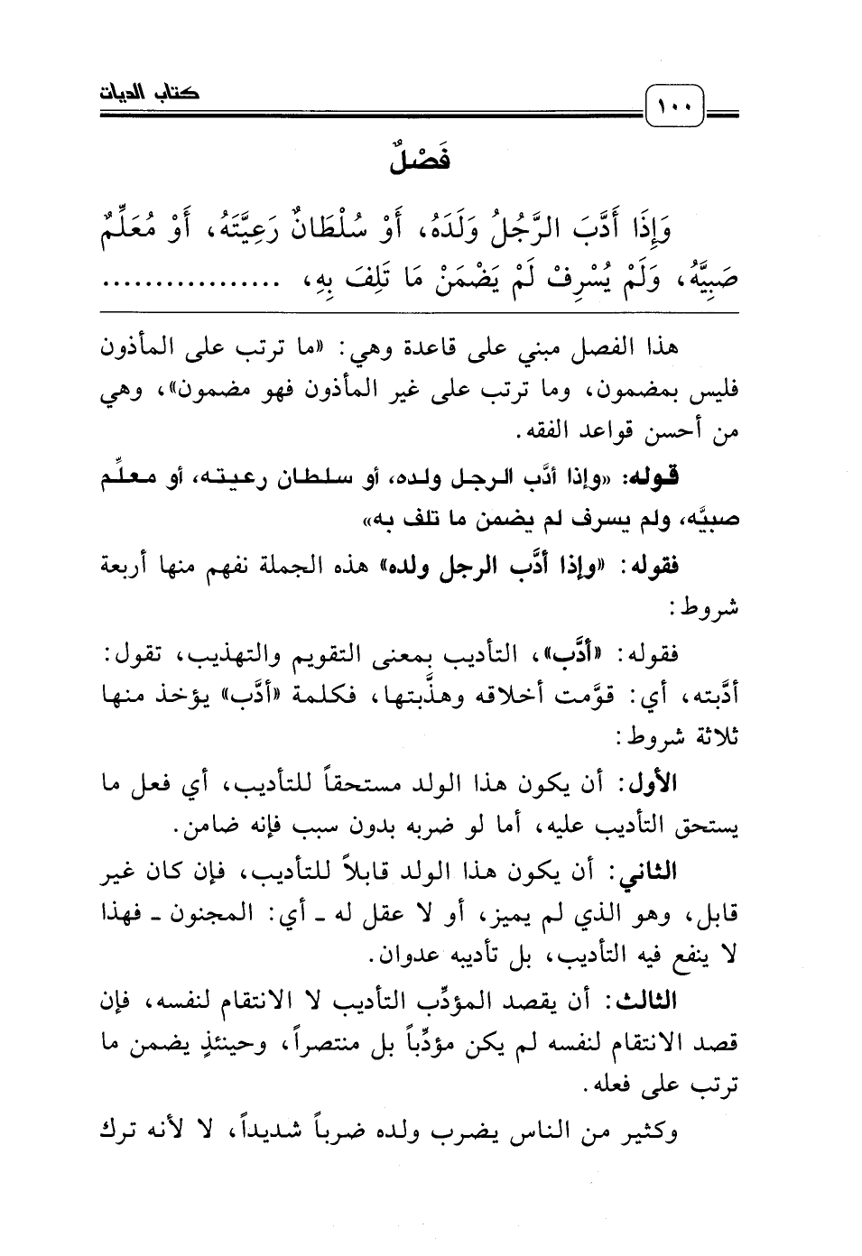 قوله: «وإذا أدَّب الرجل ولده، أو سلطان رعيته، أو معلِّم صبيَّه، ولم يسرف لم يضمن ما تلف به».