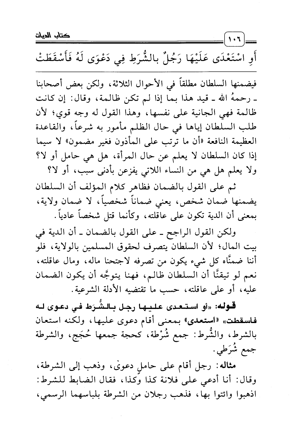 ولكن القول الراجح ـ على القول بالضمان ـ أن الدية في بيت المال؛ لأن السلطان يتصرف لحقوق المسلمين بالولاية، فلو أننا ضمنَّاه كل شيء يكون من تصرفه لاجتحنا ماله، ومال عاقلته، نعم لو تيقنَّا أن السلطان ظالم، فهنا يتوجَّه أن يكون الضمان عليه، أو على عاقلته، حسب ما تقتضيه الأدلة الشرعية.