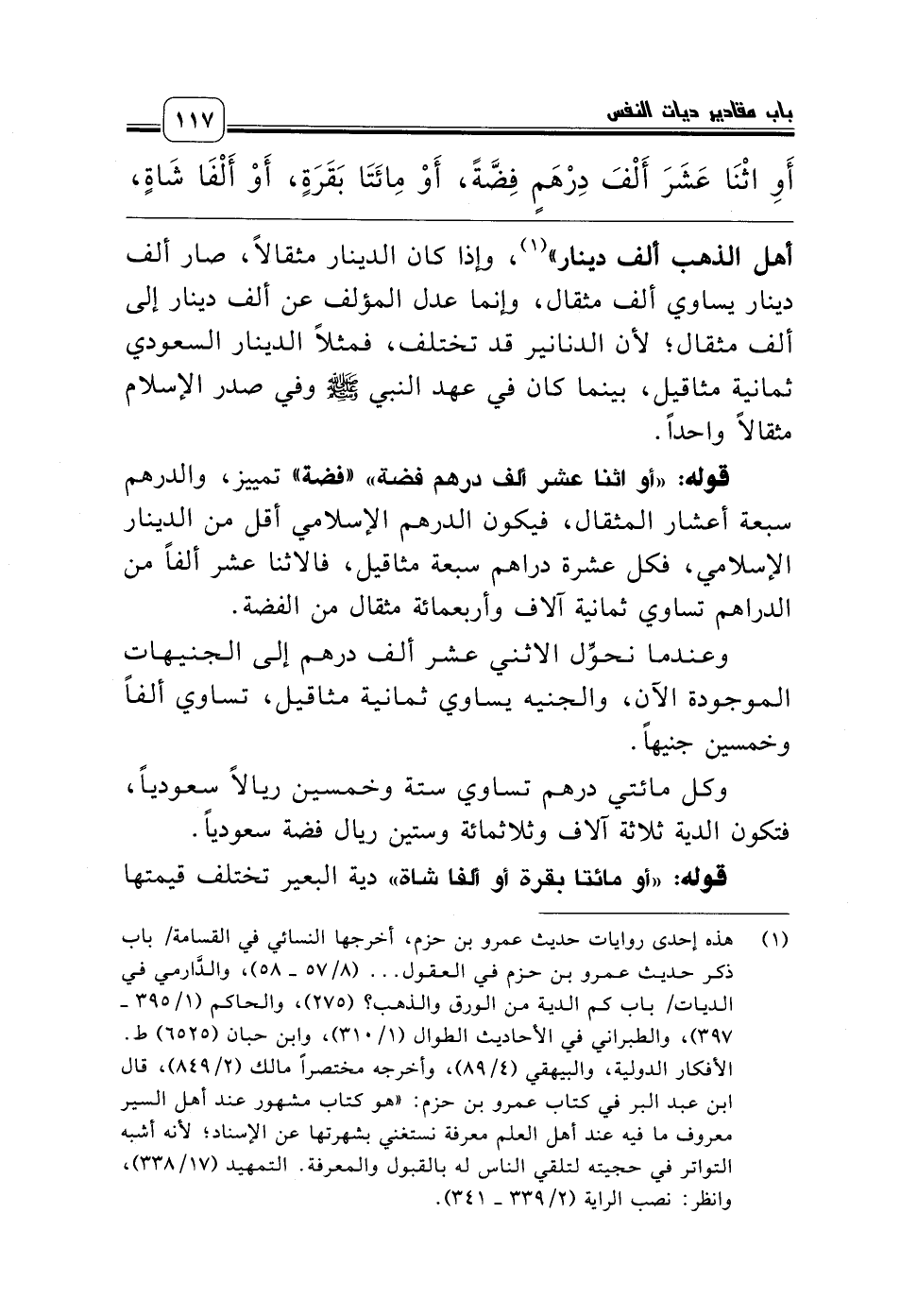 (¬1) هذه إحدى روايات حديث عمرو بن حزم، أخرجها النسائي في القسامة/ باب ذكر حديث عمرو بن حزم في العقول