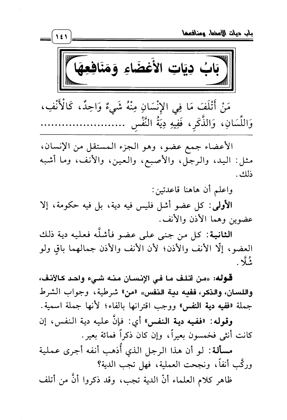 بَابُ دِيَاتِ الأَعْضَاءِ وَمَنَافِعِهَا