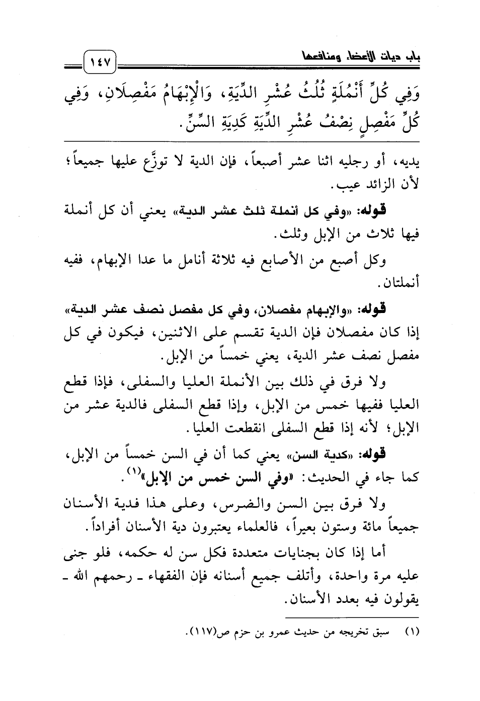 قوله: «وفي كل أنملة ثلث عشر الدية» يعني أن كل أنملة فيها ثلاث من الإبل وثلث.