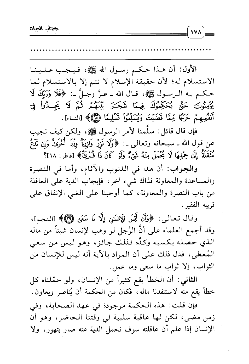 والجواب: أن هذا في الذنوب والآثام، وأما في النصرة والمساعدة والمعاونة فذاك شيء آخر، فإيجاب الدية على العاقلة من باب النصرة والمعاونة، كما أوجبنا على الغني الإنفاق على قريبه الفقير.