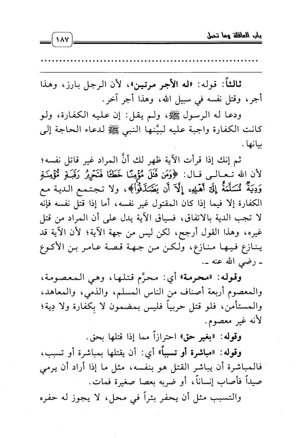 ثم إنك إذا قرأت الآية ظهر لك أنَّ المراد غير قاتل نفسه؛ لأن الله تعالى قال: {وَمَنْ قَتَلَ مُؤْمِناً خَطَأً فَتَحْرِيرُ رَقَبَةٍ مُؤْمِنَةٍ وَدِيَةٌ مُسَلَّمَةٌ إِلَى أَهْلِهِ إِلاَّ أَنْ يَصَّدَّقُوا}، ولا تجتمع الدية مع الكفارة إلا فيما إذا كان المقتول غير نفسه، أما إذا قتل نفسه فإنه لا تجب الدية بالاتفاق، فسياق الآية يدل على أن المراد من قتل غيره، وهذا القول أرجح، لكن ليس من جهة الآية؛ لأن الآية قد ينازع فيها منازع، ولكن من جهة قصة عامر بن الأكوع ـ رضي الله عنه ـ.