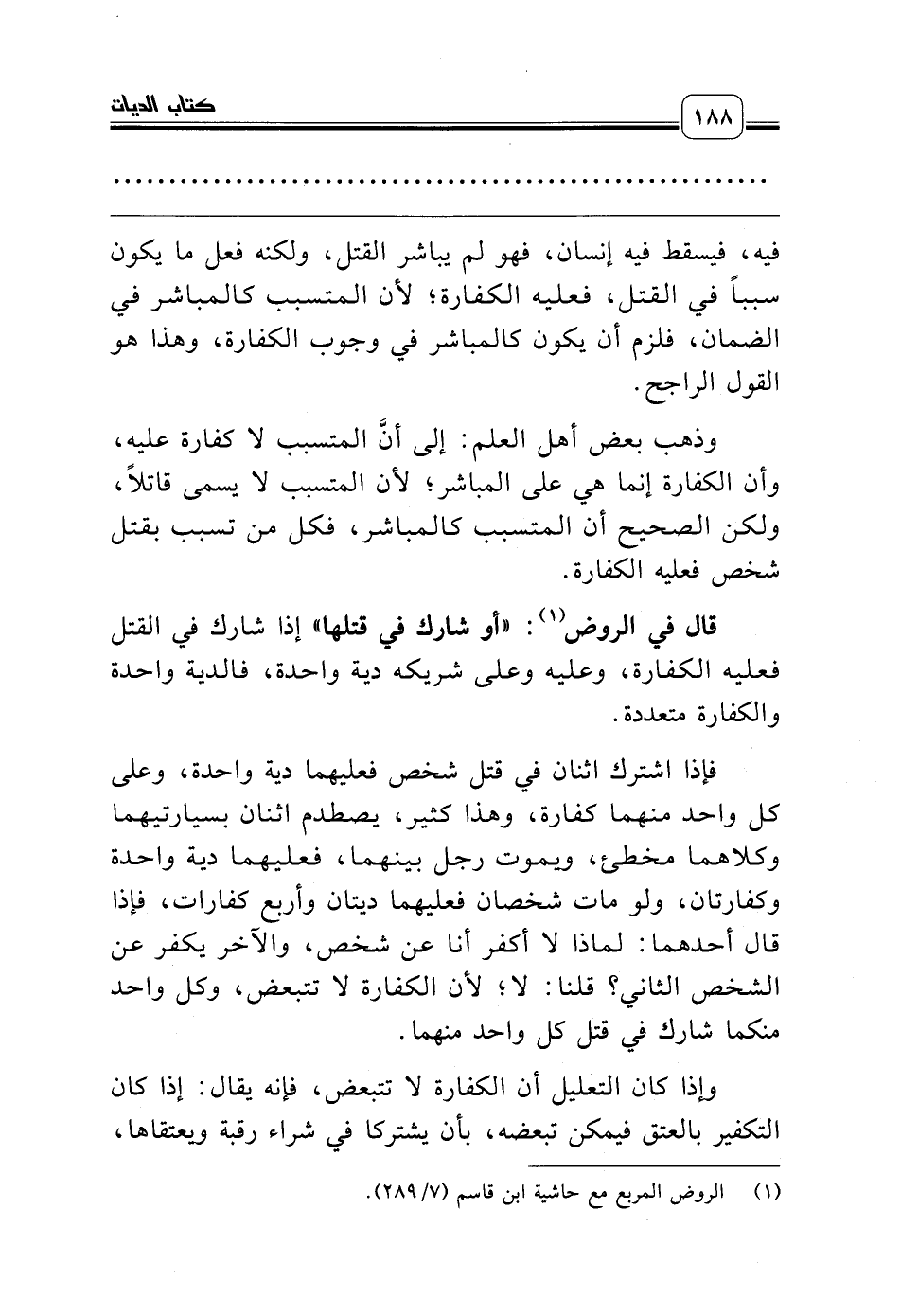 وذهب بعض أهل العلم: إلى أنَّ المتسبب لا كفارة عليه، وأن الكفارة إنما هي على المباشر؛ لأن المتسبب لا يسمى قاتلاً، ولكن الصحيح أن المتسبب كالمباشر، فكل من تسبب بقتل شخص فعليه الكفارة.