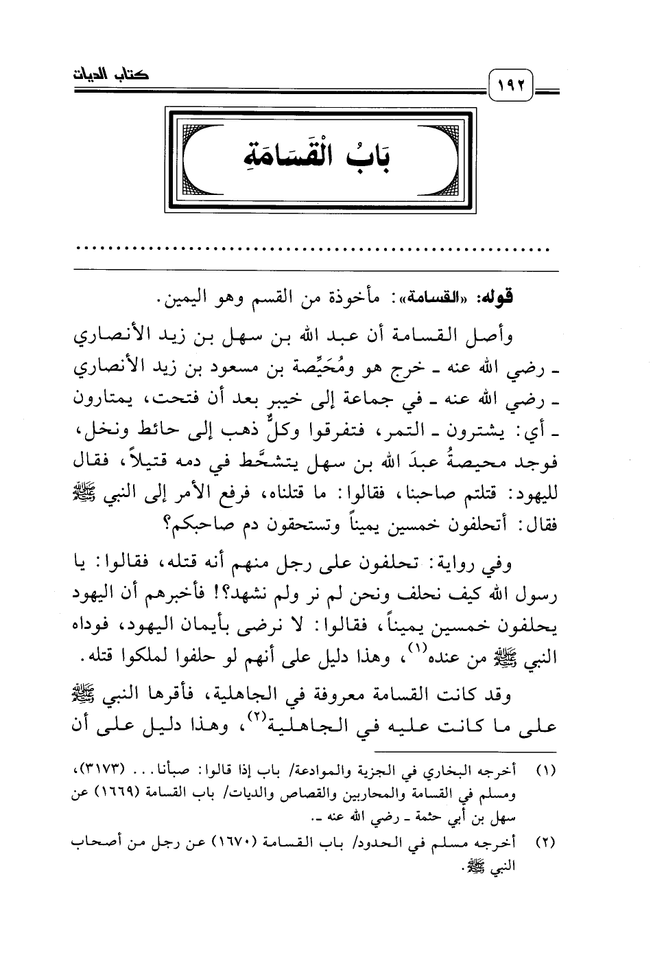 (¬2) أخرجه مسلم في الحدود باب القسامة (1670) عن رجل من أصحاب النبي صلّى الله عليه وسلّم.