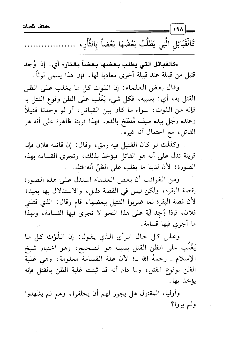 «كالقبائل التي يطلب بعضها بعضاً بالثأر» أي: إذا وُجد قتيل من قبيلة عند قبيلة أخرى معادية لها، فإن هذا يسمى لوثاً.