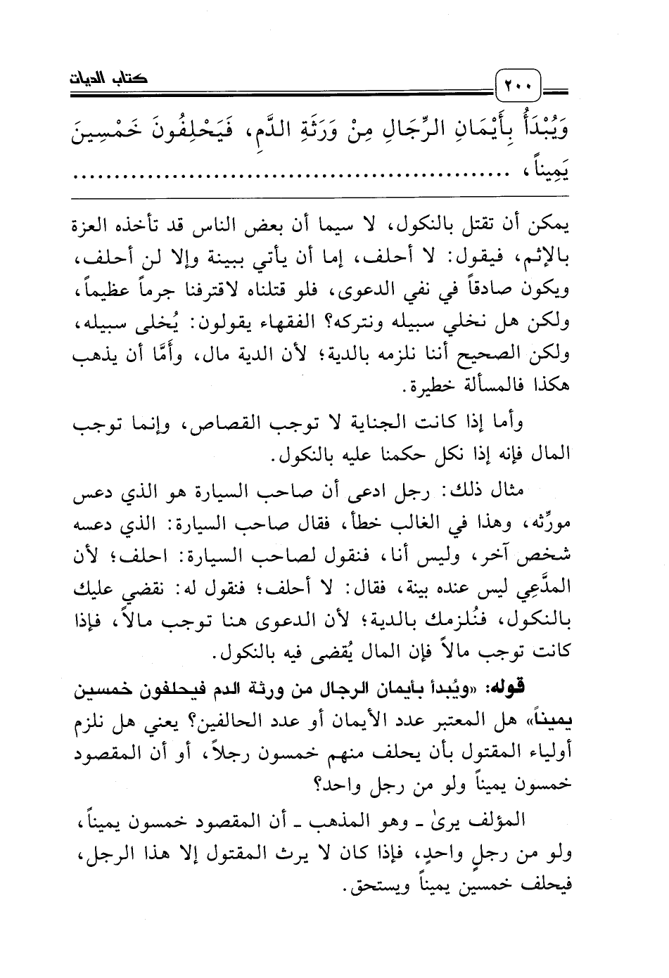 قوله: «ويُبدأ بأيمان الرجال من ورثة الدم فيحلفون خمسين يميناً» هل المعتبر عدد الأيمان أو عدد الحالفين؟ يعني هل نلزم أولياء المقتول بأن يحلف منهم خمسون رجلاً، أو أن المقصود خمسون يميناً ولو من رجل واحد؟