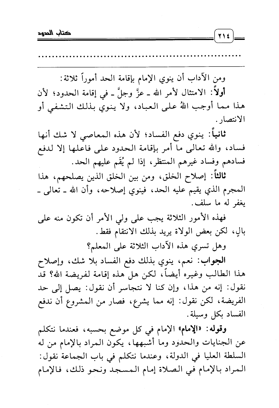 ومن الآداب أن ينوي الإمام بإقامة الحد أموراً ثلاثة: