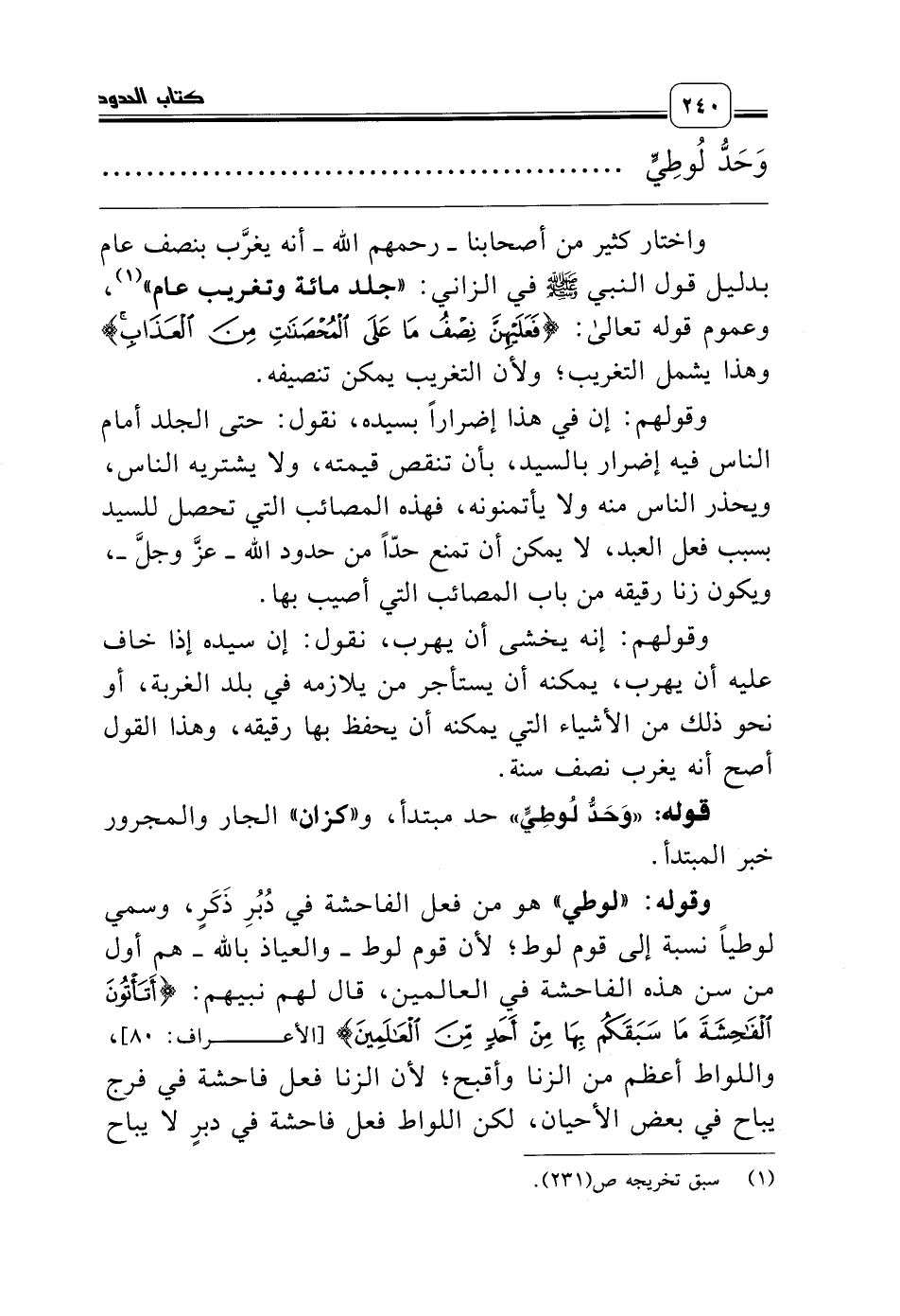 وقوله: «لوطي» هو من فعل الفاحشة في دُبُرِ ذَكَرٍ، وسمي لوطياً نسبة إلى قوم لوط؛ لأن قوم لوط ـ والعياذ بالله ـ هم أول من سن هذه الفاحشة في العالمين، قال لهم نبيهم: {أَتَأْتُونَ الْفَاحِشَةَ مَا سَبَقَكُمْ بِهَا مِنْ أَحَدٍ مِنَ الْعَالَمِينَ} [الأعراف: 80]، واللواط أعظم من الزنا وأقبح؛ لأن الزنا فعل فاحشة في فرج يباح في بعض الأحيان، لكن اللواط فعل فاحشة في دبرٍ لا يباح