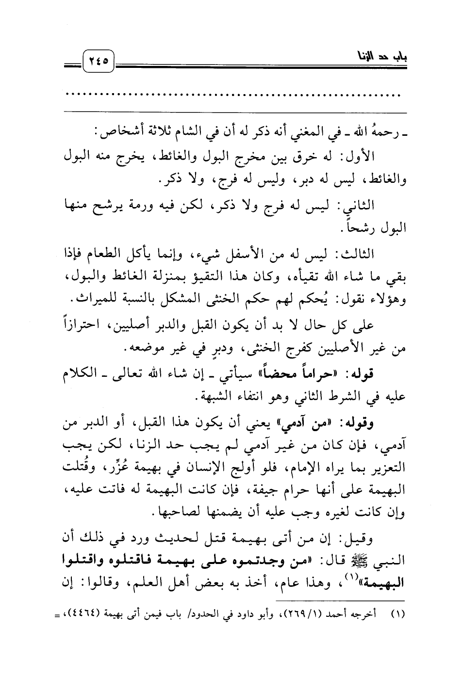 (¬1) أخرجه أحمد (1/ 269)، وأبو داود في الحدود باب فيمن أتى بهيمة (4464)، والترمذي في الحدود باب ما جاء