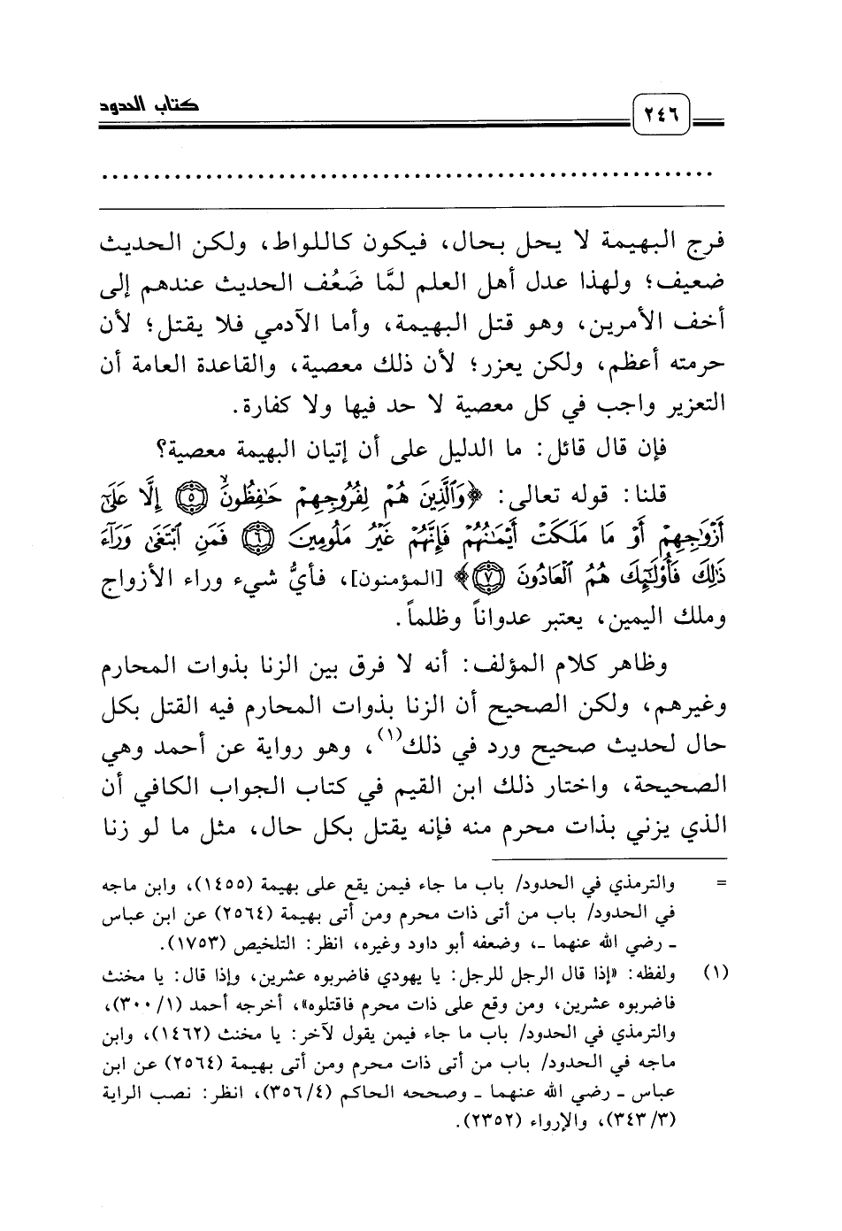 وظاهر كلام المؤلف: أنه لا فرق بين الزنا بذوات المحارم وغيرهم، ولكن الصحيح أن الزنا بذوات المحارم فيه القتل بكل حال لحديث صحيح ورد في ذلك (¬1)، وهو رواية عن أحمد وهي الصحيحة، واختار ذلك ابن القيم في كتاب الجواب الكافي أن الذي يزني بذات محرم منه فإنه يقتل بكل حال، مثل ما لو زنا