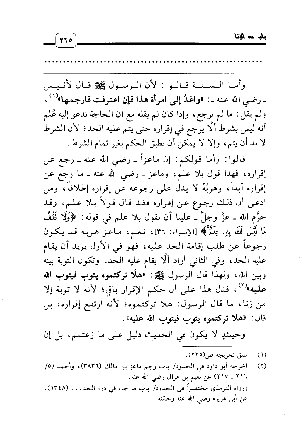 (¬2) أخرجه أبو داود في الحدود/ باب رجم ماعز بن مالك (3836)، وأحمد (5/ 216 ـ 217) عن نعيم بن هزال