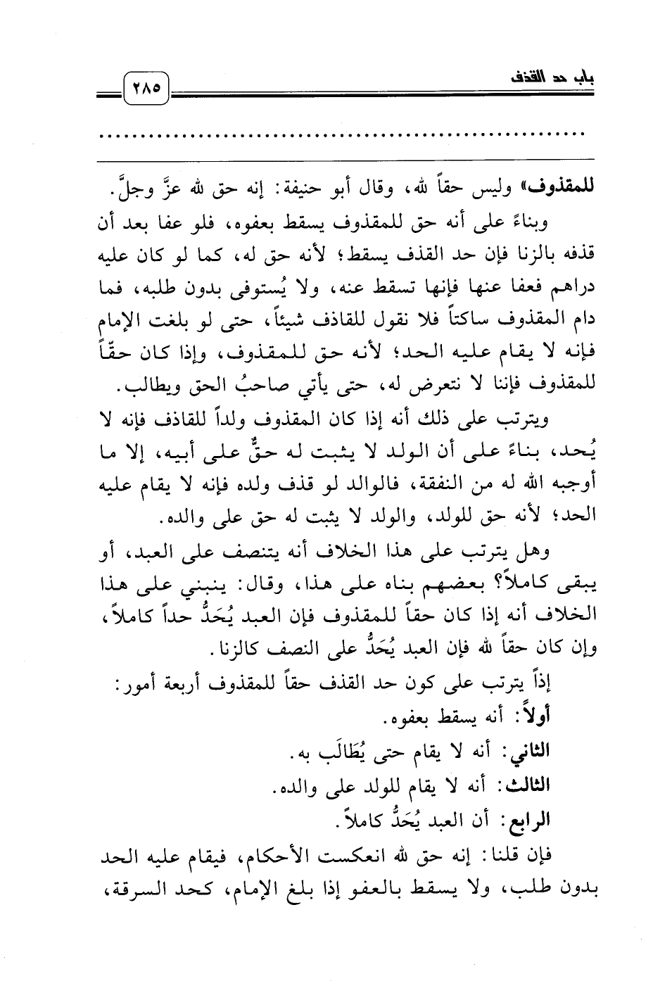للمقذوف» وليس حقاً لله، وقال أبو حنيفة: إنه حق لله عزّ وجل.