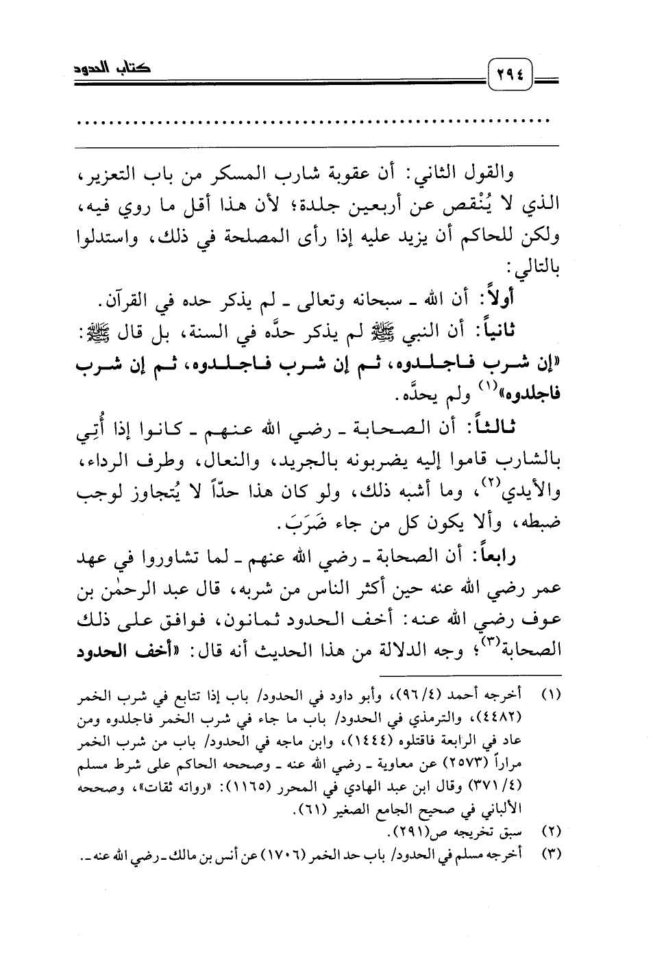 رابعاً: أن الصحابة ـ رضي الله عنهم ـ لما تشاوروا في عهد عمر رضي الله عنه حين أكثر الناس من شربه، قال عبد الرحمن بن عوف رضي الله عنه: أخف الحدود