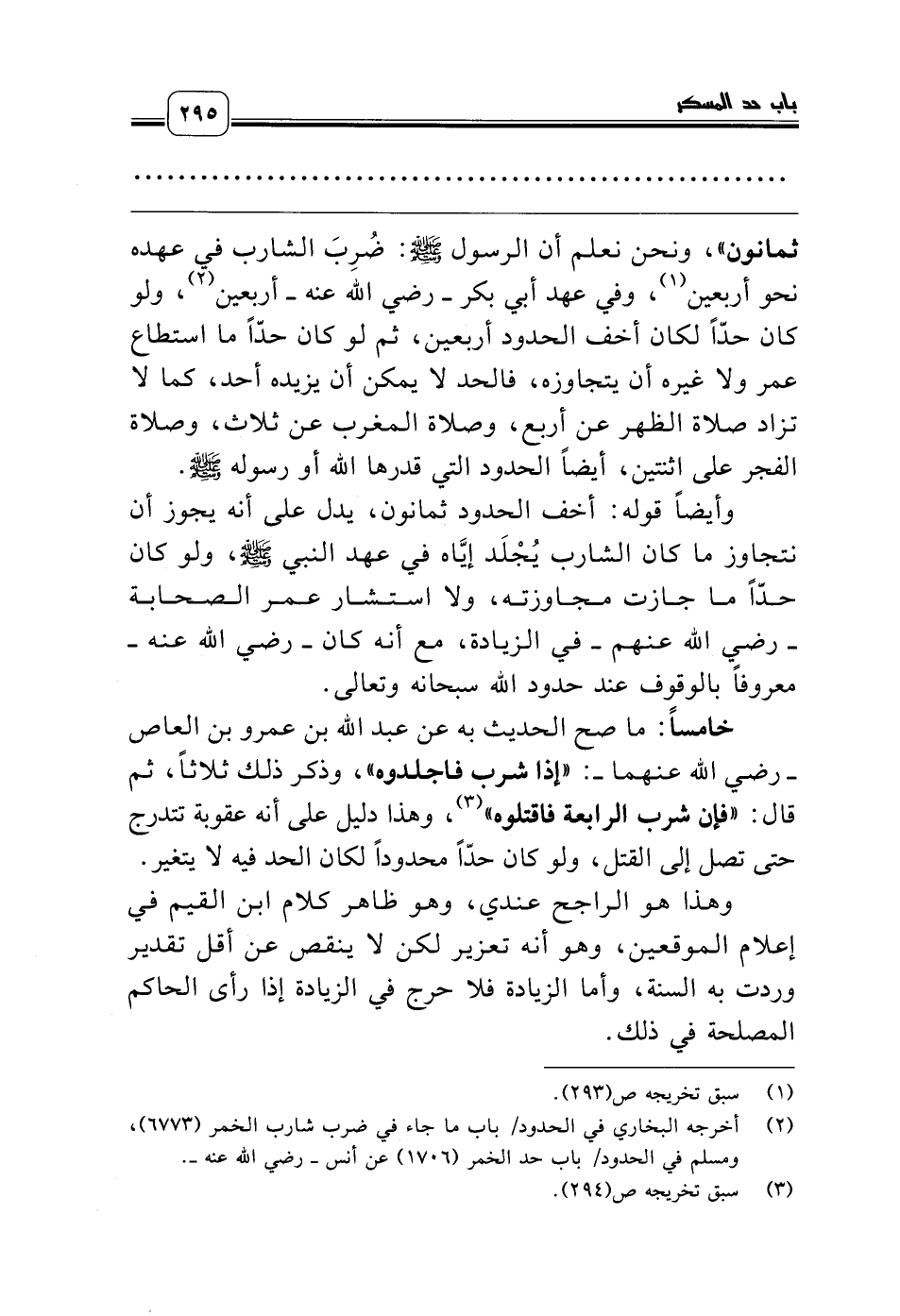 (¬3) أخرجه البخاري في الحدود/ باب ما جاء في ضرب شارب الخمر (6773)، ومسلم في الحدود/ باب حد الخمر (1706) عن أنس ـ رضي الله عنه ـ.